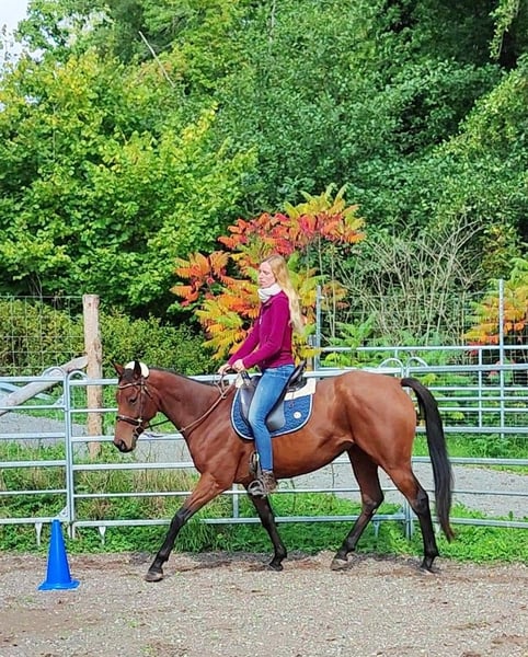 Foxred - Versatile Riding Horse with Great Potential! 6-year-old, 165cm tall, brown Thoroughbred gelding with modern pedigree Sire: ANJAAL, Dam: AMARY. Fox impresses at first sight. He is very clear-headed and uncomplicated in handling, fearless and people-oriented. Under saddle, he delights with reliability, pleasant movement enthusiasm, and enough sensitivity for the large arena or working with children/teenagers. He is willing to work and continually impresses with his people-oriented nature. He works well alone, does not require reassurance from other horses, and adapts quickly to new environments. Ideal for off-site training, competitions, or trail rides. He captivates with his inner calm and impeccable character. His three very good basic gaits are comfortable to sit and offer a lot of potential for more front action and reach. His connection is fine and brings joy to the rider when calling upon the learned lessons. Fox also loves the outdoors and is a reliable partner, whether accompanied or on a solo ride! A riding horse for versatile demands! Perfectly suited for beginners, teenagers, experienced riders, and for further training in dressage, jumping, or trail riding! RIDING VIDEOS and FREERUNNING VIDEOS available via WhatsApp ✔️ A pre-purchase examination can be commissioned as desired ✔️ Getting to know him, trial rides, transport to the new home,... can be arranged in advance and at the expense of the buyer ✔️ Fox is well-socialized, farrier-friendly, and loading-friendly, barefoot, and will only be sold to a species-appropriate home with year-round accessible pasture. He is a cribber and therefore requires large pasture areas (in hectare size) to be healthy and happy. This wonderful gelding is available at such a low price only because of this particularity! For more information, feel free to contact 01778787640.