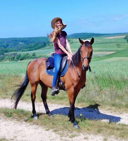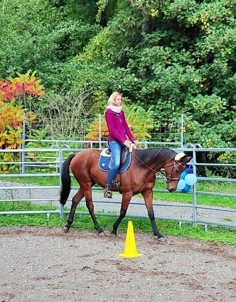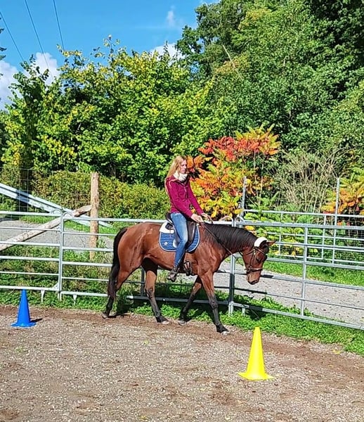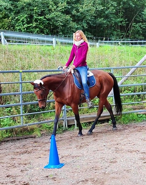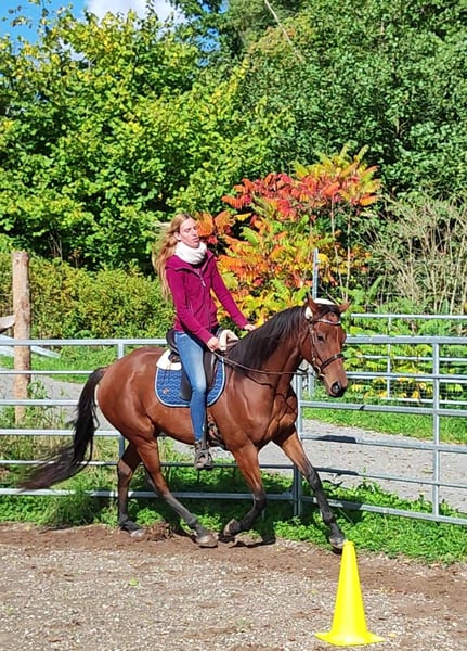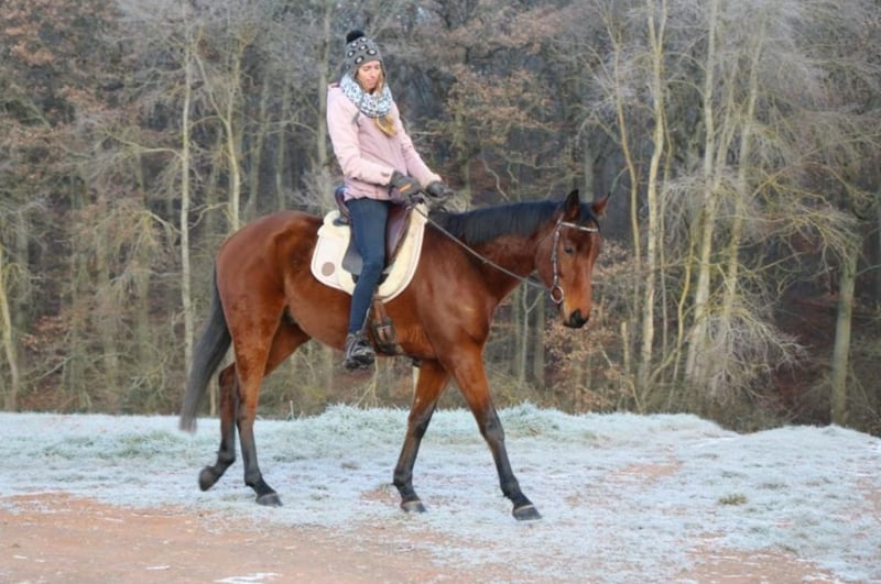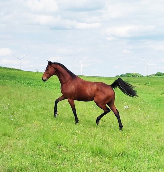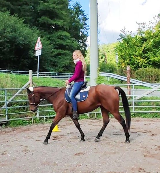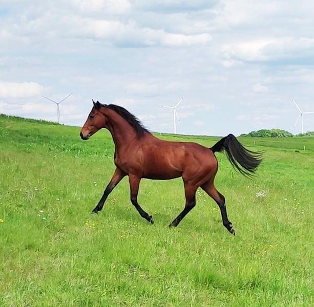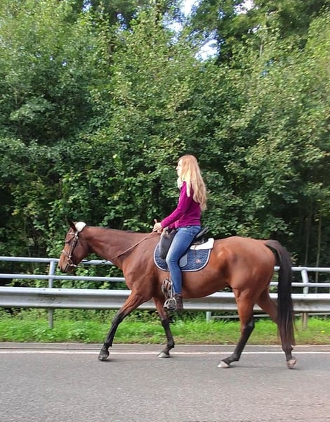 Foxred – Versatile riding horse with great potential! **Please note:** Priority is given to those who can provide a loving home with year-round turnout / robust management! A 6-year-old, 165 cm tall, bay Thoroughbred gelding with modern bloodlines: Sire: ANJAAL, Dam: AMARY. Fox immediately captures attention. He is very intelligent and straightforward in handling, fearless, and attentive to humans. Under saddle, he impresses with his reliability, smooth movement, and enough sensitivity for the big arena or work with children and young riders. He is eager to work and consistently impresses with his friendly nature. He works well alone, does not require the security of other horses, and adapts quickly to new environments. Ideal for off-site training, competitions, or trail riding. His calm demeanor and impeccable character make him a true pleasure. His three good basic gaits are comfortable to sit and offer great potential for more front-end activity and expressive movement. His connection is refined, making it enjoyable for the rider to execute learned movements. Fox also loves the terrain and is a reliable partner whether in company or on solo rides! He remains very relaxed and uncomplicated in this setting as well. **** www.handmade-horses.de **** ✔️ Well-schooled and trail-safe ✔️ Suitable for beginners ✔️ Suitable for children and young riders ✔️ Healthy ✔️ Vaccinated and dewormed ✔️ Full papers and equine passport ✔️ Farrier- and load-friendly A pre-purchase examination can be arranged according to your preferences. Getting to know each other & trial riding (€45), transport to the new home, etc., are possible after prior arrangement and at the buyer’s expense! Fox is well socialized, farrier- and load-friendly, barefoot, and will only be sold into a species-appropriate environment with access to pasture all year round. He is a pony at heart and therefore needs large pasture areas (at least 5000 sqm, even in winter) to stay healthy and happy. He prefers robust management and does not want a box or a small paddock. Please contact me via WhatsApp (01778787640).