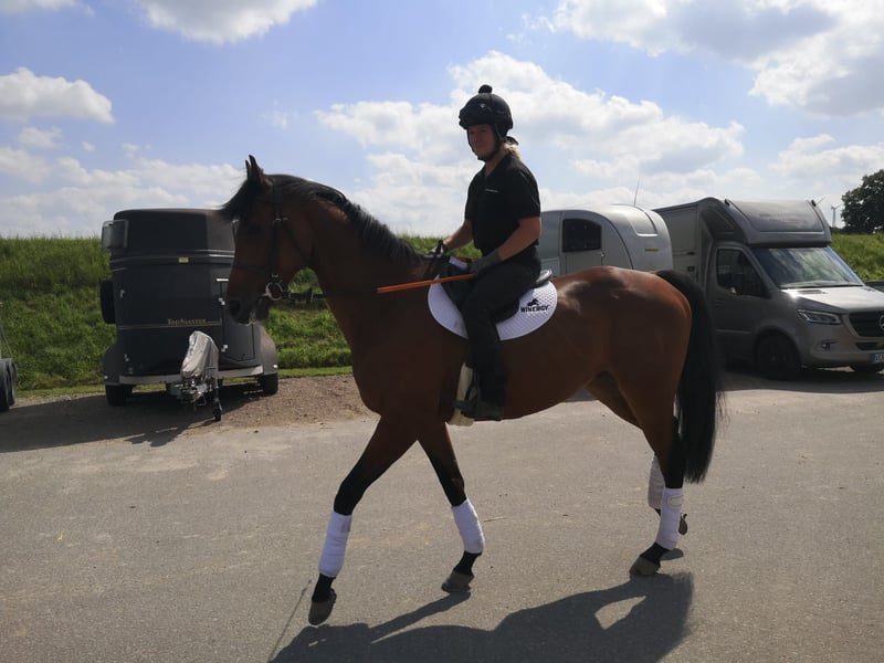 For sale is the 5-year-old ex-racehorse gelding "McLeod." McLeod is looking for a new carrot giver! He is a 5-year-old gelding by Soldier Hollow, out of Manita. McLeod has a completely cool and unflappable character. Despite a break, he is immediately ready for action and you could start working with him right away. McLeod is willing to do anything, providing him with the perfect foundation for a great leisure horse. He has basic dressage skills and is ready for further progress in training. He is curious and enjoys learning new things. He is a real treasure and a horse to love! We can imagine that he might also enjoy small jumps; however, he does not have any experience in this area yet! He had a tendon injury, which has completely healed. McLeod is, of course, microchipped, regularly vaccinated, dewormed, and loadable. Interested parties are welcome to try McLeod under saddle. A small fee will be charged, which will be deducted from the purchase price in case of serious interest! €6,700 (negotiable). The gelding is located in Bremen-Mahndorf at the stable of Pavel Vovcenko. McLeod is looking for *supportive hands* to help him reach his full potential and train him into a great leisure horse. If you are interested or need more information, please contact Pavel Vovcenko (+49 176 84075673). He is only being sold as a leisure horse; further use in racing is excluded!