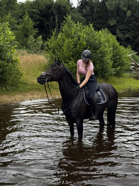 À vendre : une jument pur-sang de 10 ans (environ 1,63 m), issue de Soldier Hollow x Königin Shuffle. Elle possède une bonne lignée et a déjà eu quatre poulains, ce qui pourrait également la rendre intéressante pour la reproduction. La jument est bien montée, fine aux aides et montre du talent ainsi que du plaisir en saut d’obstacles. Elle a participé à deux compétitions de saut en obstacle en WBO, qu’elle a parfaitement maîtrisées, bien que cela ait aussi été une source de stress pour elle. En manège, elle est typique du pur-sang : très sensible et rapidement stressée, surtout dans de nouvelles situations ou en de nouveaux lieux. Elle nécessite beaucoup de temps, de calme, des structures claires et une personne constante, très calme, prête à instaurer une relation de confiance progressive avec elle. Lorsqu’elle accorde sa confiance, elle se bat pour son cavalier. Elle n’est absolument pas peureuse et adore l’eau (elle se couche même volontiers dedans). Elle apprend vite et peut également réaliser quelques petits tours. Le travail à pied lui plaît beaucoup. Lors du longes, elle se montre également sage, bien que je préfère personnellement ne la faire longe qu’avec un licol. Il n’est pas possible de la sortir seule en balade pour le moment. En duo ou en groupe, cela ne pose aucun problème, elle reste détendue. Dans le troupeau, elle est facile et tranquille. Elle est régulièrement vaccinée et vermifugée, se montre très sage chez le maréchal-ferrant, le vétérinaire et le dentiste, et porte deux fers à l’avant. Elle se tient très calmement sur la remorque et possède tous ses papiers. Nous recherchons non pas un débutant, mais une personne expérimentée, patiente, empathique et disposant de suffisamment de temps, capable d’accepter un cheval sensible tel qu’il est et de lui offrir de l’amour. La vente se fait à regret, uniquement à des mains calmes, compréhensives et expérimentées dans la gestion de chevaux sensibles. Demande au 01781989499.