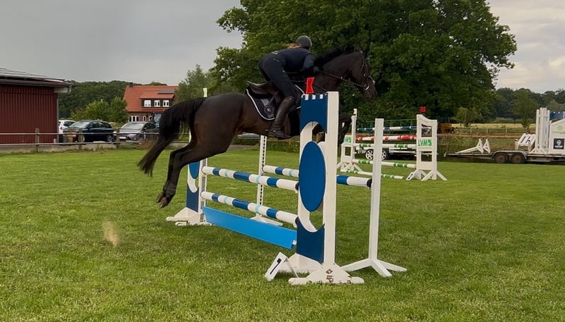 Zum Verkauf steht eine 10-jährige Vollblutstute (ca. 163 cm), abstammend von Soldier Hollow x Königin Shuffle. Sie hat eine gute Abstammung und bereits vier Fohlen bekommen. Wäre also für die Zucht weiterhin interessant. Die Stute ist gut geritten, fein an den Hilfen und zeigt Talent sowie Freude am Springen. Sie hat zwei WBO-Springturniere absolviert, hat es auch wunderbar gemeistert, jedoch auch mit stress verbunden. Im Umgang ist sie typisch Vollblut: sehr sensibel und schnell gestresst gerade in neuen Situationen oder an neuen Orten. Sie braucht viel Zeit, Ruhe, klare Strukturen und einen konstanten, sehr ruhigen Menschen, der bereit ist, mit ihr langsam Vertrauen aufzubauen und gemeinsam zu wachsen. Findet sie Vertrauen, kämpft sie für einen. Sie ist absolut nicht schreckhaft und liebt Wasser ( sie legt sich durchaus auch mal ins Wasser rein). Sie lernt schnell und kann auch ein paar kleine Tricks. Die bodenarbeit gefällt ihr sehr gut. Beim Longieren ist sie ebenfalls brav. Ich persönlich longiere allerdings immer nur am Halfter. Alleine ausreiten oder spazieren gehen ist aktuell nicht möglich. Zu zweit oder in der Gruppe allerdings kein Problem, dann ist sie entspannt. In der Herde ist sie unkompliziert und entspannt. Sie ist regelmäßig geimpft und entwurmt, ist beim Schmied, Tierarzt und Zahnarzt super brav und hat vorne zwei Eisen. Steht super ruhig auf dem Anhänger und hat volles Papier. Gesucht wird kein Anfänger sondern ein pferdeerfahrener Mensch mit Geduld, Einfühlungsvermögen und ausreichend Zeit, der ein sensibles Pferd so annimmt, wie es ist und ihr Liebe schenkt. Abgabe erfolgt schweren Herzens und ausschließlich in ruhige, verständnisvolle Hände, die gut mit sensiblen Pferden umgehen können. Anfrage unter 01781989499