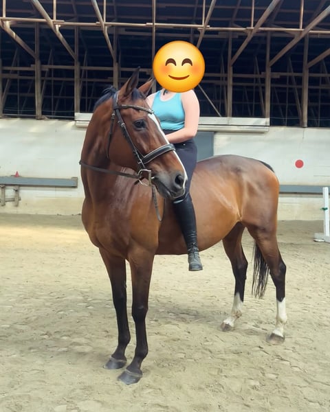 Are you ready for your new best friend? Champagne taste on an apple juice budget? Do you want the mare that gets mistaken for a warmblood… Meet Kate. JC Name: Royal Wedding Kate Barn Name: Kate Gender: Mare Birthdate: April 29,2011 Breed: Thoroughbred Color: Bay Height: 16.1hh Discipline: English (Dressage) UTD coggins, teeth, shots Location: Bangor, PA Adult ammy friendly, or even for a horse-savvy teen. Kate is not a beginner’s horse. I repeat NOT A BEGINNER’S HORSE. Kate is an absolute dreamboat to ride, she is soft in the face, responds to seat aids, she can be forward and have power when asked. Kate has her lead change, she will go in a loose rein or will frame up. She will try her heart out for her person. Kate is truly the reason there are “mare people”. Kate enjoys having a job and particularly likes dressage work. She has also been lightly jumped, done small courses and enjoys polework/cavaletti. Kate’s owner is focusing on different goals right now so Kate has been put into a program and is currently building her fitness, therefore her canter transitions don’t always “flow” the first time. With some more fitness and consistency her canter transitions will shine. She is eager to work, wants to please - can even be a bit of an overachiever. Kate loads and trailers without any issues. She has been to a few local shows and handled the show environment well. Kate stands in crossties, loves face scratchies, she will melt her sweet head right into you. Kate is currently happy barefoot and stands well for the farrier, vet, massage, chiropractor, dentist, and to be body clipped. She is currently in group turn out with other mares and is easy to catch in the field. Bring her to your barn or keep her at ours! We welcome interested buyers who are ready to meet this special mare! Reach out if you’d like to set up a time to meet Kate.