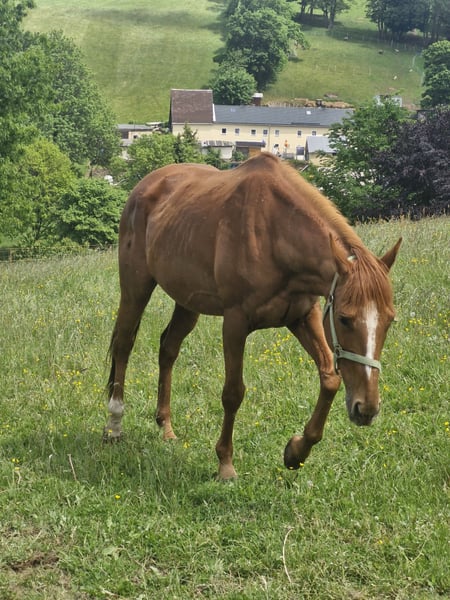 Zum Verkauf steht meine 17jährige Englische Vollblutstute. Sie ist gesund und freizeitmäßig geritten, war in jungen Jahren auf der Rennbahn. Sie hatte bisher 7 tolle Fohlen. Sie ist ein toller Freizeitpartner. Sie steht nur zum Verlauf, weil sie sich mit meiner 2. Stute nicht verträgt, die beiden passen einfach nicht zusammen. Beim Vorbesitzer stand sie in einer großen Herde und zeigte sich super sozial, stand in der Mitte der Rangordnung und kümmerte sich immer liebevoll um die Fohlen und leitete gern den dort vorhandenen Fohlenkindergarten. Bei mir steht sie im Offenstall, tagsüber auf Winterkoppel und im Sommer 24/7 auf der Weide. Sie ist frisch geimpft, letztmalig im Oktober entwurmt, tierärztlich vorgestellt und Zähne sind auch gemacht. Sie ist auch zur Zucht noch gut geeignet, das letzte Fohlen bekam sie im Juni 2024. Mit ihren 17 Jahren ist sie ruhig, aber möchte gern noch etwas arbeiten. Schreibt mich gerne an, es lässt sich über alles reden.