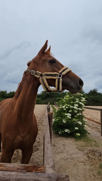 With a 100% suitable placement, our 3-year-old Thoroughbred mare can move to good hands to a permanent home outside of racing. She is currently in a racing stable and undergoing retraining. She has not run any races but is still NOT a beginner horse, as she is very young and green. She will only be placed in the hands of experienced Thoroughbred owners and preferably not with competitive riders. She needs her person and is not a horse for constantly changing riders; she enjoys being the center of attention and wants a task. With a gentle hand, she is very nice to ride, has good movements, and goes easily and contentedly on the bit. She is about 1.62 meters tall (will grow more) and, due to her slender build, is not a weight carrier (maximum 65 kg). If you take your time with her and gently continue her training, she can become a fantastic riding horse. Groundwork, mental challenges, walks, etc., bring her a lot of joy, and she enjoys learning new things. A placement as a broodmare is also conceivable due to her excellent pedigree (father is a Group I winner); her pedigree is also interesting for Warmblood breeding. She will only go to a Thoroughbred-experienced home where she is fed and kept according to her breed. Current riding video and more photos, as well as detailed pedigree, available upon request. Placement before price.