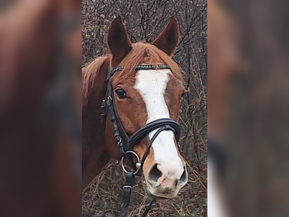 We are selling "First Fly" on behalf of her owner. She is a 16.0 hh chestnut mare with three good basic gaits and initial experience in free jumping. First Fly joined our riding facility in November after winning a race earlier this year. We have provided her with a varied program so far, including riding, lunging, free jumping, and daily turnout in the paddock. Her retraining is still ongoing but well underway. Therefore, we are looking for an experienced rider familiar with Thoroughbreds. The mare has clean legs and has never been injured to date. She is shod in front. Her sweet and friendly nature is particularly noteworthy, also towards her stablemates. Further information gladly available by phone: 0172-6523358. First Fly is neither a children's pony nor an beginner's horse.