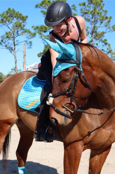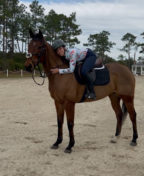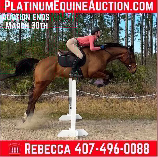 ONLINE AUCTION Place your bids at www.PlatinumEquineAuction.com Starting Bid $3500 Auction ends March 30th, 2025 Need a new saddle? Check out White Rock Saddles on our website or Facebook! Looking for a horse with talent, a sweet personality, and a bright future? Meet Mālie JC Pauciloquent, a stunning soon to be five year old Thoroughbred mare standing at 16hh (and still growing). She is the total package—versatile, kind-hearted, and built to turn heads in the hunter, jumper, or equitation ring. Mālie is an old soul – she is easygoing, even-tempered ride, perfect for someone who values a partner that takes care of their rider. She has transitioned beautifully from the track to her new career, with a natural aptitude for jumping and a calm, confident demeanor that makes her an absolute joy to handle. Barefoot, easy to load, and a pro for both farrier and body clipping, this horse is as straightforward as they come. Whether you’re a junior, an amateur, or a pro looking for your next project, Mālie is ready to shine. Where is she in her training? As of the new year, she’s has been started over fences—and she absolutely loves it! She has fabulous lead changes which continue to come more automatic with each ride. She is also coming along with building balance and suppleness on the flat. Every ride brings noticeable progress, and she’s steadily learning to reach for contact. She is ready to start in your program! Estimated scope 2.0 m+ PPE welcomed and she will pass with flying colors! For more info contact Rebecca Rodriguez 407-496-0088 Located in Christmas, FL. ONLINE AUCTION Place your bids at www.PlatinumEquineAuction.com Starting Bid $3500 Auction ends March 30th, 2025 Need a new saddle? Check out White Rock Saddles on our website or Facebook!
