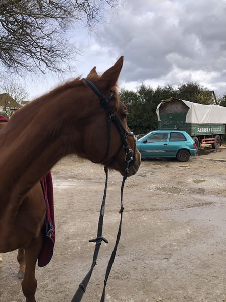 For sale on behalf of the owner is the stunning 8-year-old mare "Pearl," approximately 16.1 hh. Pearl is being offered due to lack of time. She has so far been used only for leisure riding and light work. She is familiar with lunging, the round pen, and under saddle in all three gaits. Pearl is barefoot and well-behaved when trimmed. She is motivated and has a good go, so she is not suitable for beginners.