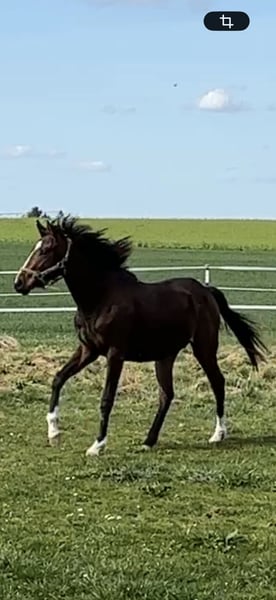 For sale: a promising English full-blood stallion born in 2024. The chestnut foal impresses with its elegant appearance and promising potential for eventing. Standing at 16.1 hh, he has the ideal size for demanding eventing competitions, but also suits other disciplines such as endurance riding, show jumping, or for leisure riding. The young stallion is already well-behaved when halted and led, and is compatible with other horses. However, he requires a competent and experienced handler to continue his training. We do not have enough time to give him the attention he needs, as he demands a lot and we cannot provide him with the necessary dedication. A great horse for ambitious riders seeking a talented young prospect. If interested, I am happy to provide further information and arrange a viewing.