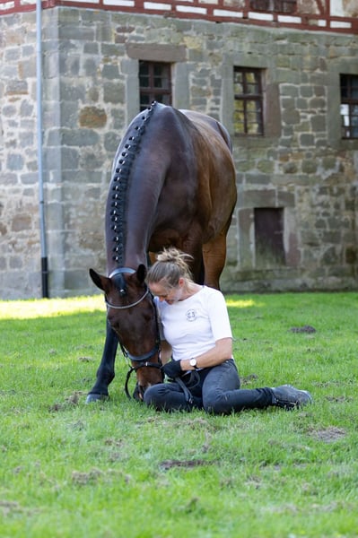 Large-framed, with a harmonious build and good topline, our Nachtgold stands out. He is correctly conformed and possesses three very good basic gaits. His walk is especially expressive and diligent, his trot is rhythmic and relaxed, and his canter is balanced and well-sprung. He handles his body very well and demonstrates this during free jumping, where he impresses with skill and eagerness to learn. He is also motivated during cavaletti work! Nachtgold is curious, friendly, and has a calm demeanor. His sire, the Quarter Horse In Versuchung, is successful in dressage competitions in France. His dam, Nachschwalbe by E.H. TAMBOUR, holds the title of Elite Mare of the Trakehner Verband due to her high-quality progeny. Her daughters Nachtruhe, Nachtamsel, Nachtlerche, and Nachteule are premium mares. Nachtgold is a buddy who wants to please and always puts in his best effort. Thanks to his light-footedness and size, he is suitable for both ladies and gentlemen, as well as for young riders who want to learn with young horses. Nachtgold is good-natured but not sluggish. He has recently been presented in dressage tests at level A. In his further training, he confidently advances to extended trot and lateral movements. He combines versatile potential with an excellent character and is ready for new challenges!