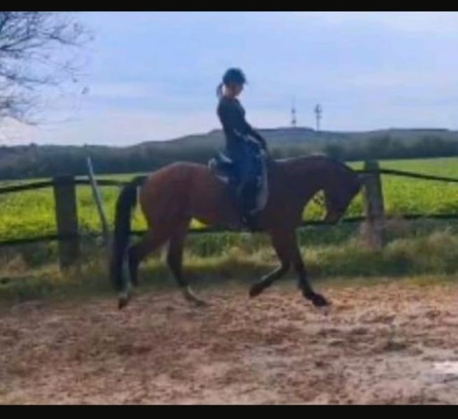 Caballo de corazón: hermoso, bien criado y deportivo caballo de deporte Trakehner, de 5 años, con buenos resultados en concursos para jóvenes caballos con experiencia. Debido a que la vida a veces toma caminos diferentes a los planeados, debo (yo, mujer) separar a mi caballo en desarrollo. Como me importa mucho que tenga un buen hogar, lo entrego por debajo del valor, en las mejores manos. Pedigrí: Tecumseh x Oliver Twist 168 cm de altura Formación y desarrollo: K. está en mi posesión desde que era potro; ha crecido de manera adecuada, en contacto cercano con las personas y en un entorno familiar en manada, con mucho espacio para moverse y desarrollarse tranquilamente. Como decidí darle tiempo para su crecimiento, ya fue sometido a montas suaves hace aproximadamente un año. Desde el principio mostró ser tranquilo, inteligente y muy dispuesto a aprender. Carácter: - Absolutamente equilibrado mentalmente - Obediente en el manejo - De buen carácter, tranquilo en la herrería - Resistente al agua y al viento - Insensible a ruidos - Muy cercano a las personas y amigable con los niños - Sin experiencias negativas previas K. es muy sociable con las personas, por lo que me importa especialmente que vaya a un lugar donde sea valorado y reciba mucho espacio para moverse. Actualmente está en entrenamiento y en crecimiento, por lo que debe tener experiencia con caballos jóvenes. Debería convertirse en mi caballo en desarrollo. La entrega se realiza por motivos estrictamente personales, imprevistos, que no tienen nada que ver con la calidad del caballo. Precio de venta: 8.500 € Ubicación: Dinslaken, 46539 Si está interesado, agradeceré sus consultas.