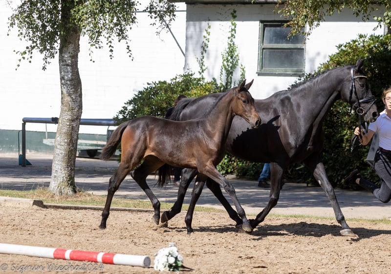 Butts La Jolie R ist eine herausragende Zuchtstute -Stutleistungsprüfung: Gesamt 8,13; Springnote 9,0- mit beachtlicher Eigenleistung im Vielseitigkeitssport. Sie entstammt der renommierten Trakehnerfamilie, aus der auch das berühmte Pferd Butts Leon hervorgegangen ist. Butts Leon feierte unter Andreas Dibowski zahlreiche Erfolge, darunter: - **Goldmedaille** mit der Mannschaft bei den Olympischen Spielen 2008 in Peking - **Gewinner** der Einzelwertung beim Luhmühlen CCI**** 2009 - **Mehrfacher Sieger** und Platzierter bei internationalen Vielseitigkeitsturnieren Butts La Jolie R ist die Tochter des bekannten Springvererbers Caruso Nero. Sie hat bereits fünf gesunde Fohlen zur Welt gebracht, die alle von Grafenstolz abstammen. Diese Anpaarung hat sich als besonders erfolgreich erwiesen und wird auch für zukünftige Zuchtpläne in Erwägung gezogen, kann jedoch individuell mit dem Käufer abgestimmt werden. Diese Stute bietet eine ausgezeichnete Gelegenheit für ambitionierte Züchter und Reiter, die auf der Suche nach einem Pferd mit herausragendem Potenzial und wertvoller Genetik sind.