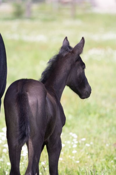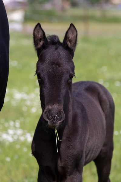 Diese hübsche Dame ist im Mai 2023 geboren und eine aufgeschlossene und neugierige Stute. Hally Gally ist korrekt und gesund. Sie wächst im Herdenverband auf. Schmiedefromm ist sie auch bereits