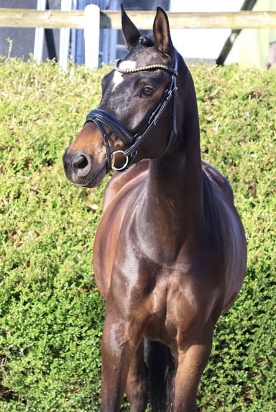 Halfmoon is a 5-year-old mare by Ganderas out of an Ovaro mare. At the end of 2024, she was awarded the title of Siegerstute at the Trakehner SLP with an overall score of 8.0. Walk: 8.0 Trot: 8.0 Canter: 7.5 Type: 8.0 Following this successful performance test, Halfmoon initially stayed on the breeder's pasture to grow. She has been back in training for several weeks now. X-rays are available.