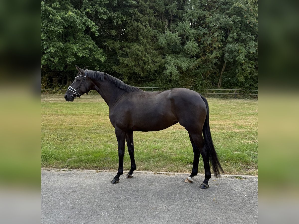 For sale is an elegant Trakehner mare born in 2021. She presents herself in an appealing black coat and has a height of 167 cm. This talented mare is particularly suitable for dressage and already shows good potential in her training. Her movements are smooth and springy, making her a promising partner. The mare is well-mannered, well-educated, and has a friendly character. She is suitable for both experienced riders and those who are willing to work with her with professional help. Last year, she completed the mare book registration of the Trakehner Association with above-average scores, making her interesting for breeding as well. If you are interested or need further information, please feel free to contact me.