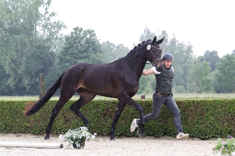 Kroon van Kronberg - Sixtus De premiehengst Kronberg geeft een indrukwekkend visitekaartje af met deze aantrekkelijke zwartbruine schoonheid. De grootramige jonge merrie van de gerenommeerde stoeterij Wiesenhof weet zich te presenteren als een talentvolle belofte voor de grote dressuursport. Met haar fascinerende schoonheid, onmiskenbare Trakehner charme en aristocratische en sublieme uitstraling van iets bijzonders, betovert Krönchen haar toeschouwers onmiddellijk. Met een fascinerende dynamiek in haar bewegingen bracht deze dansende ballerina commissie en toeschouwers in vervoering ter gelegenheid van haar merreregistratie en kreeg dienovereenkomstig hoge cijfers. Een bijzondere vermelding verdient haar ritmische, levendige en lichtvoetige draf, waarvoor ze een 8,0 kreeg, een 8,5 voor haar opvallend harmonieuze en overtuigende totaalindruk en een 9,0 voor haar voorbeeldige bergopwaartse galop. Krönchen kreeg een begeerde 56 punten op basis van haar superieure prestaties en wordt aanbevolen als een zeer aantrekkelijke vertegenwoordiger van haar ras voor de verenigingspremie. De hengst Kronberg baarde al opzien met zijn eerste veulens en stuurde zijn zoon Barino naar het ovaal van de Holstenhalle op de Trakehner Hengstenmarkt 2023, waar hij de titel "Premiehengst" kreeg. Kronberg zelf kwalificeerde zich als vijfjarige overtuigend voor het Bundeschampionat voor eventingpaarden in Warendorf. De indrukwekkende moeder Kadenz komt uit de zeer interessante en traditionele Kokette-merriestam, die al talrijke bekende succesvolle Trakehner paarden heeft voortgebracht. Hiertoe behoren de goedgekeurde hengsten Königstein van Königsruf, Königssee van Interconti (ook Bundeschampion eventing met Ingrid Klimke in 2016), Kara Ben Nemsi van Luxor en Kiranga van Millennium. In de vallende pedigree vormen onder andere de bewezen prestatieverervers Sixtus en Easy Game een bijzondere bloedcombinatie. Easy Game heeft allang naam gemaakt als topvererver: als vader van onder andere Olympisch, Wereld- en Europees Kampioen TSF Dalera BB en bronzen medaillewinnaar op het WK Dressuur Hermes wist hij indrukwekkende fokkerijaccenten te leggen. Krönchen combineert atletisch vermogen met die speciale Trakehner-smaak en is een zeer interessant vooruitzicht voor de fokkerij en de sport.