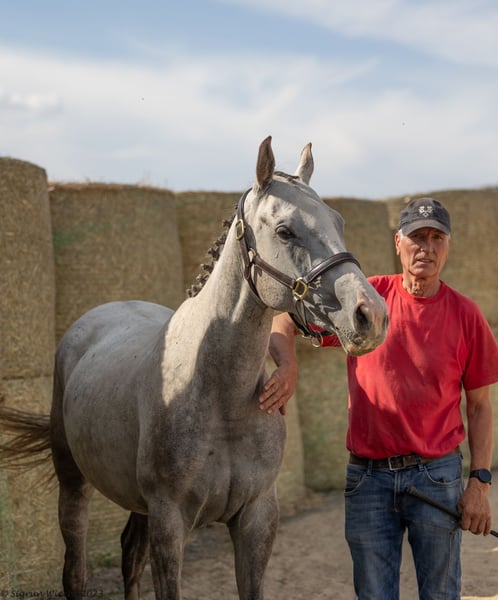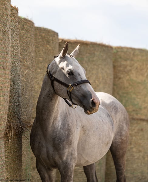 OSHAWA urodziła się w 2019 roku i miała mnóstwo czasu, aby rozwinąć się jako koń 3/4 hodowli. Niedawno rozpoczęła treningi ze skoczkiem i udowadnia, że jest bardzo utalentowana, szybko się uczy i jest zmotywowana. Imponuje nie tylko bardzo dobrymi podstawowymi chodami i wrodzonym talentem do skoków, ale także swoim chłodnym usposobieniem i bardzo przyjazną, zorientowaną na ludzi naturą. Jej ojciec, startujący w III Gr. NUNTIUS xx, jest przyrodnim bratem czołowego konia wyścigowego NOVELLIST xx, który wygrał m.in. King George VI i Queen Elisabeth Stakes, a następnie został sprzedany do Japonii. Matka NIGHT LAGOON xx po Lagunas xx dała wiele wybitnych koni wyścigowych, a później stała się własnością Coolmore Stud. Wyhodowana po Galileo xx, dała m.in. topową klacz Magical Lagoon xx oraz klasowego płotkarza i wielokrotnego zwycięzcę RAYAUME UNI xx (Timeform rating 132). NUNTIUS xx, który jest wykorzystywany jako ojciec w naszym programie hodowlanym trakeńczyków, produkuje konie z jasną głową, chociaż pierwsze potomstwo ma zaledwie sześć lat i obecnie zdobywa pierwsze doświadczenia w zawodach (np. w Turcji). Jest on również ojcem kandydata do premii 3/4 krwi Saxonietta a.d. Sachsenkrone po Fiepes Winged xx, który został wpisany do księgi stadnej trakeńczyków z 54,5 punktami. Matka OLYMPIANA jest córką wyjątkowego konia pełnej krwi angielskiej FAVORITAS xx. Jeden z najlepszych koni pełnej krwi w międzynarodowych skokach przez przeszkody. Mistrz Norwegii w konkursie indywidualnym i drużynowym w 1998 roku. W 2002 roku zdobył brązowy medal na Mistrzostwach Świata Ogierów w Zangersheide. Osiągnął również wiele pierwszych i drugich miejsc w krajowych i międzynarodowych konkursach Grand Prix, a także Pucharach Narodów i Pucharach Świata w skokach przez przeszkody, w tym zwycięstwo w Grand Prix na CSIO w Drammen (NOR) oraz zwycięstwa w Pucharach Narodów w Posnan (POL) i Drammen (NOR). Sprawdzona pod względem wyników wnuczka, ODESSA XII, jest córką E.H. Friedensfürsta, którego wszechstronna dziedziczność jest bardziej aktualna niż kiedykolwiek, zwłaszcza dzięki jego synowi LÜCKE (ojcu m.in. pełnych braci TECUMSEH i TEMPELHOF oraz zwycięzcy HLP Stadl Paura, 08/21, LILIENTHAL). Jest między innymi półsiostrą HIPPO'S ORNETA po E.H. Biotop, który odnosił międzynarodowe sukcesy w VS, oraz OSIRIS R, który uzyskał licencję ZFDP. Zarówno Odessa XII, jak i jej matka Oktiabrina po Telets 77, która została wyhodowana w Kirow Stud, dały kilku kandydatów do licencji dla Neumünster. Kolejna matka, E.St. Odaliska po Topki, jest matką licencjonowanego OKTAN po Tesis i jego pełnych braci OTVET (skaczącego do 1,50 m) i OKTET, który odnosi sukcesy w zawodach. Jest również matką ogiera KOMPLIMENT po Verstovoj, który odniósł wiele sukcesów na poziomie Grand Prix, w tym został najlepszym rosyjskim koniem ujeżdżeniowym w 2007 roku i zajął drugie miejsce w rankingu koni trakeńskich na świecie w latach 2008 - 2009 WBFSH. Spojrzenie na rodowód Oshawy ujawnia sportowe geny aż do ostatnich pokoleń zarówno po stronie matki, jak i ojca, z doskonałymi kirowskimi korzeniami. Sportowa klacz i klejnot hodowlany, który chcielibyśmy sprzedać w odpowiednio wspierające ręce, ale które nie wykluczają całkowicie późniejszej kariery hodowlanej tej piękności o wysokiej linii krwi. Film w linku YouTube pokazuje matkę OLYMPIANA skaczącą swobodnie. Dlaczego "cena na zapytanie"? Prosimy o niezobowiązujący kontakt w sprawie ceny wywoławczej. Preferujemy kontakt osobisty i dlatego celowo nie określamy kategorii cenowej, ponieważ ważna jest dla nas przestrzeń i perspektywy dla naszych koni. Transport może być zorganizowany. Nasze konie są często przewożone między Bułgarią a Niemcami, Szwajcarią lub Austrią. Dlatego ten punkt powinien być najmniejszą przeszkodą. Do tej pory sprzedaliśmy konie do DE, CH, AT i Australii. Zadowolenie klienta w tym punkcie jest również dla nas ważne. Prosimy o kontakt, jeśli są Państwo zainteresowani dalszymi informacjami, filmami i zdjęciami. Telefon komórkowy +359 886 281 305 (również WhatsApp) lub E-mail: j_muehlethaler@yahoo.com
