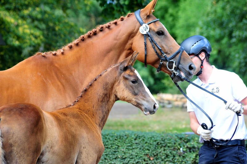 Wir bieten hiermit unsere außergewöhnliche Trakehner Zuchtstute Scarlett zum Verkauf an. Scarlett ist eine 9-jährige Fuchsstute mit einer beeindruckenden Abstammung und einem hervorragenden Zuchtpotenzial. Abstammung und Nachkommen Scarlett stammt ab vom Elitehengst E.H. All Inclusive und ist derzeit tragend von E.H. Millenium. Sie hat bereits zwei prächtige Hengstfohlen geboren und erweist sich als äußerst fürsorgliche Mutter. Ihr Hengstfohlen aus 2025 ist auf den Fotos zu sehen. Scarlett ist die Vollschwester des Reservesiegers Scaglietti, der als dokumentierter Vererber bekannt ist und bereits Vater von herausragenden Spitzenstuten wurde. Ihre Mutter Schneeflocke war eine Ikone unter den Trakehner Mutterstuten und lieferte Sportpferde bis Grand Prix Niveau. Merkmale - Leitstute: Scarlett zeigt sich stets als souveräne und ruhige Leitstute in der Herde. - Handhabung: Sie ist absolut lieb und stets leicht händelbar. - Gesundheit: Scarlett war immer gesund, mit Ausnahme einer alten, ausgeheilten Verletzung am Nackenband. - Exterieur: Mit einer Größe von 173 cm und einem stabilen Fundament ist Scarlett eine imposante Erscheinung. - Gangarten: Sie zeichnet sich durch sehr schwungvolle Grundgangarten aus. - Prämierungen: Scarlett wurde als Prämienstute des Trakehnerverbandes ausgezeichnet. Bei der Stuteneintragung erhielt sie 54,5 Punkte und absolvierte die SLP mit 7,95 Punkten. Bitte beachten Sie, dass Scarlett aufgrund der alten Verletzung am Nackenband ausschließlich als Zuchtstute verkauft wird und nicht für die reiterliche Nutzung geeignet ist. Wenn Sie auf der Suche nach einer außergewöhnlichen Zuchtstute sind, die sowohl durch ihre Abstammung als auch durch ihre eigene Qualität überzeugt, dann ist Scarlett die perfekte Wahl und könnte nach dem Absetzen des Hengstfohlens Anfang Dezember in ihr neues Zuhause umziehen. Für weitere Informationen und Besichtigungstermine kontaktieren Sie uns bitte. Wir freuen uns darauf, Ihnen Scarlett persönlich vorzustellen.