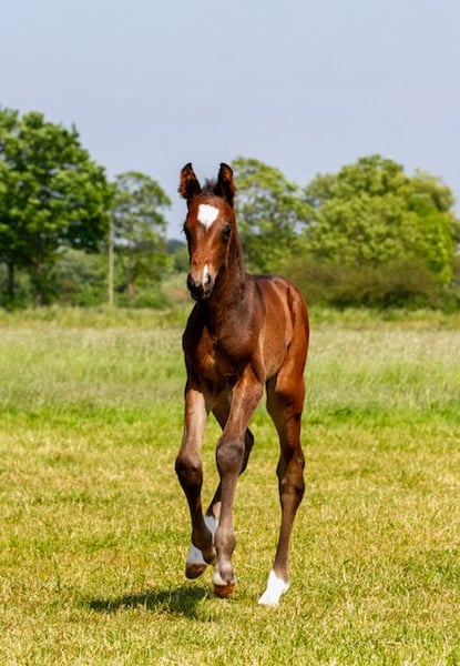 Dieses schöne Hengstfohlen, geboren am 12. Mai, wurde auf der Körung mit Prämie ausgezeichnet und für die Fohlenmeisterschaft West in Deutschland eingeladen mit folgenden Punkten: 8 – 7.5 – 7.5 / 8 – 7.5 – 8 / 7.5 = 54. Die Mutter H'indy (v. Hirtentanz) ist Elite und hat M Eventing und PSG Dressur geritten. (Siehe aktuellen Artikel auf Facebook Trakehner Rheinland). Der Vater ist der bekannte Elitehengst Millennium. Beide Großväter sind ebenfalls Elite und 4 von 8 Vorfahren sind das auch. Wie auf der Körung gesagt wurde: „eine seltene elitäre Abstammung dieses schönen Fohlens mit zusätzlichem Bewegungsvermögen. Die Kombination all dieser Gene hat ein sehr sportliches, gutes Fohlen hervorgebracht. Ein ansprechendes Fohlen mit guten Verbindungen, das gerne und gut bewegt. Ein guter, raumgreifender Schritt und ein schöner, untergesprungener Galopp mit stolzer Ausstrahlung und einem korrekten Fundament.“ Die Hengste Millennium, Easy Game und Gribaldi bedürfen keiner zusätzlichen Erläuterung bezüglich ihrer sportlichen Leistungen, aber auch in der Mutterlinie steckt viel Sport, neben der Mutter auch verschiedene Pferde im Subtop: (siehe https://www.horsetelex.nl/horses/pedigree/2687995/havanarivo). Das Fohlen ist gut erzogen und hat einen ruhigen, intelligenten und kooperativen Charakter. Regelmäßig entwurmt und vom Schmied begutachtet, der übrigens nichts tun musste aufgrund des korrekten Fundaments und der Härte der Hufe. Das Fohlen hat einen zusätzlichen Takt im Trab und wird bald ein dunkles Fell bekommen, das so charakteristisch für Millennium-Abstammungen ist. Das Fohlen kann nach dem Absetzen eventuell vor Ort in die Aufzucht bleiben.