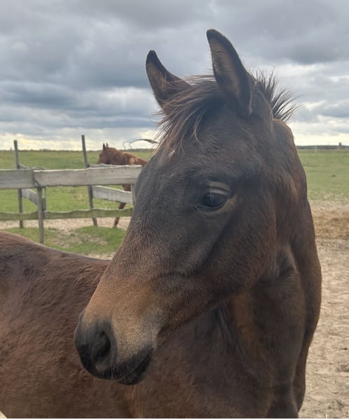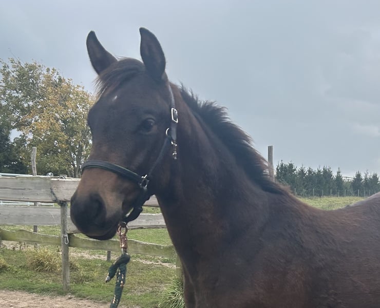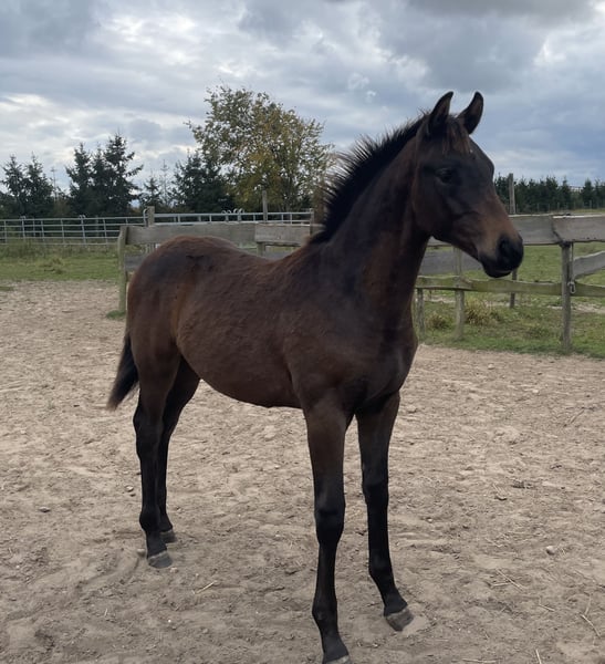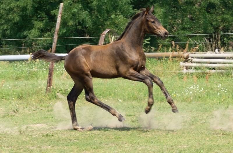Noble and elegant, lively and well-built, athletic with an exemplary attitude, as well as dynamic and always rhythmically consistent in movement — this is a true crowd-pleaser from a top bloodline. He is also very personable, as he is very friendly and well-behaved around people, including children, with whom he is very familiar. In his young life, he has already experienced cars, tractors, horse trailers, and even dogs — all with ease. Fit and cheerful, he currently lives happily in a small herd in an open stable with plenty of pasture. He proudly boasts an exceptional pedigree filled with sport-proven genes: his sire, celebrated on the international 4-star eventing stage, combines with the legendary breeding stallion Millennium and the Grand Prix-winning dressage wonder Amadelio TSF, all rooted in a dam line that also produced the dressage star Freiherr von Stein from Moritzburg.