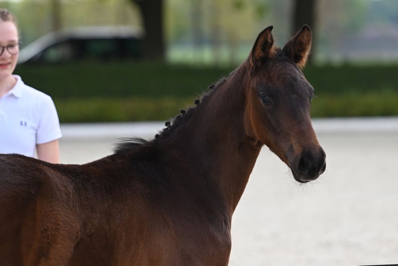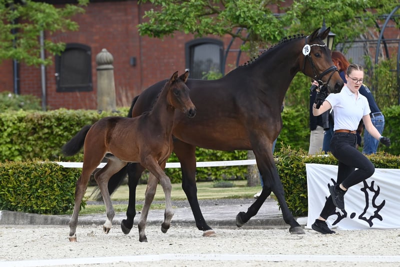Orgulloso hijo de E.H. Schwarzgold, que pisa el suelo de ventas aquí. Grande de cuerpo y de transmisión con una pata trasera bien trabajada, esa podría ser la descripción corta. Con un buen desarrollo general, impresiona en todo momento con un movimiento vivo con ritmo y flexibilidad y una base correcta. Su padre Schwarzgold, también exitoso en doma de nivel avanzado (S) con Sascha Böhnke, es sin duda uno de los principales sementales Trakehner de la última década. Su pedigrí es seguido por el semental premium Honoré Du Soir, así como el valioso E.H. Kentucky, que ha producido un número nada desdeñable de caballos de deporte. Los mejores prerrequisitos para la competición posterior.