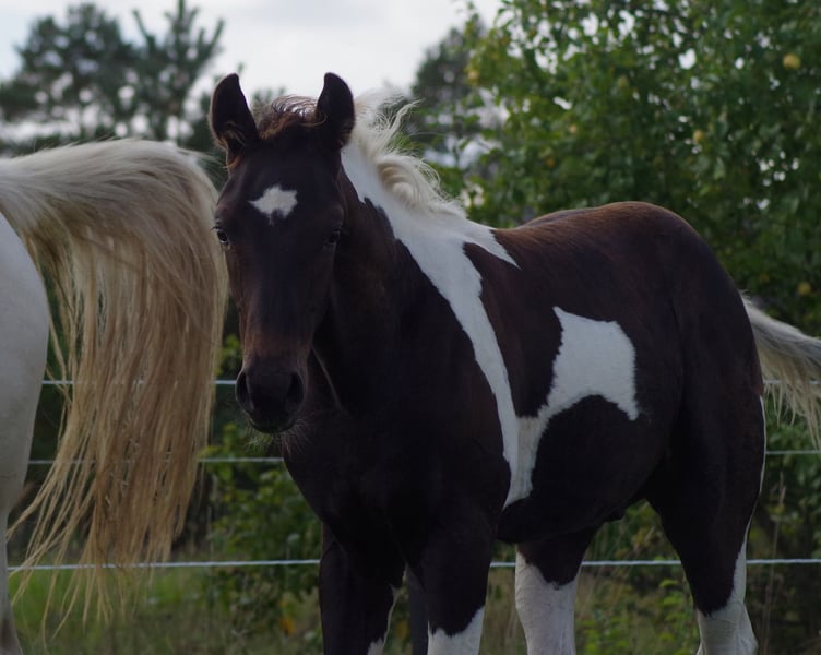 Sehr schickes großrahmiges Trakehner HF in Sonderlackierung Smokey black tobiano, die einzige in der Welt! Smokey Black bedeutet, dass Sie kein gewöhnlicher Rappe ist, sondern des Creme-Gens trägt, Sie ist ein sogenannter „Palomino Black“. Er ist eine Grosse, starke Fohlen mit tollen Bewegungen; korrekt, gesund; sehr klug und friedlich. Der Vater, Honeybrook Chapman, wurde in Großbritannien geboren und galt als einer der vielversprechendsten Camaro-Söhne. Camaro selbst war der erfolgreichste Tobianoscheck-Trakehnerhengst mit mehreren Platzierungen bis zur Klasse M in Vielseitigkeits- und Springprüfungen, er hat auch an den Deutschen Bundeschampionaten teilgenommen und sich zweimal in den ersten Rängen platzier. Muttervater ist Vollbluthengst Goldmaker von RFF The Alchemist xx, Mutter von Mutter ist polnischer ostpreußischer Trakehner Linie. Endmass geschätzt ca 175 cm. Volle Trakehner-Papiere, Steht in einem kleinen Gestüt in Estland, kann problemlos nach Deutschland gebracht werden. Zwei Vollgescwister wurden bereits nach Deutschland importiert. anneli.kadakas@gmail.com https://www.facebook.com/reinu.talu/