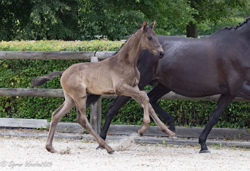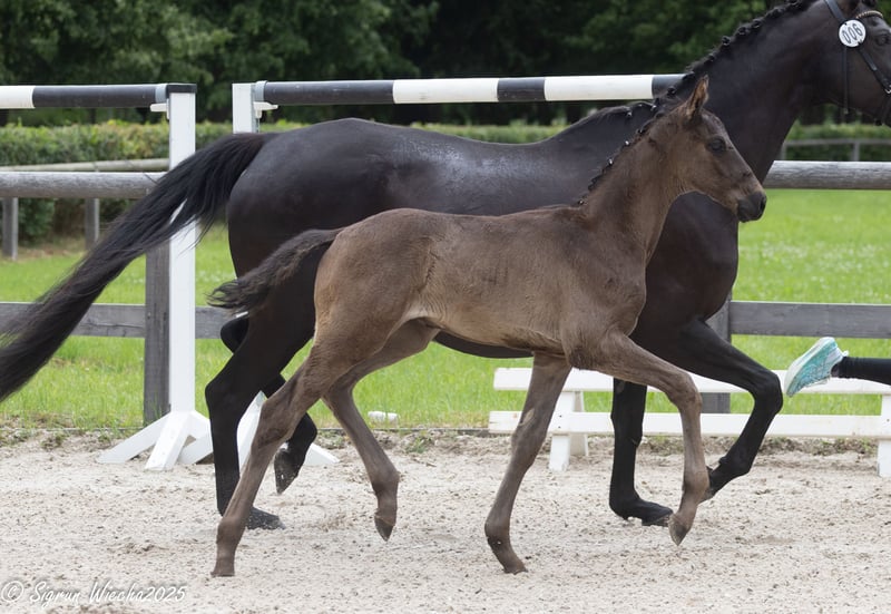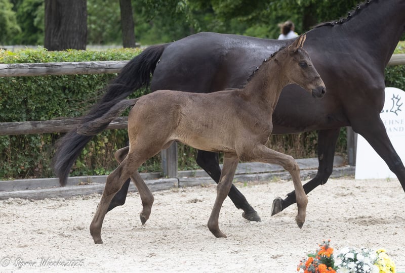 Dieser rahmige Hengst überzeugt durch drei sehr gute GGA und seine unkomplizierte Art. Mit 56 Punkten bewertet hat er sich für das Fohlenchampionat qualifiziert. Für den Galopp erhielt er eine 9,0! Sein freundliches Wesen und die guten Grundgangarten machen ihn zu einem idealen Partner für ambitionierte Reiter, die auf der Suche nach einem talentierten Nachwuchspferd sind. Der Vater Hirtenstern überzeugt durch beeindruckende Rittigkeit und ist hocherfolgreich in Nachwuchspferdeprüfungen. Die Mutter Korrina führt seltenes Leistungsblut mit dem nötigen Blutanschluss