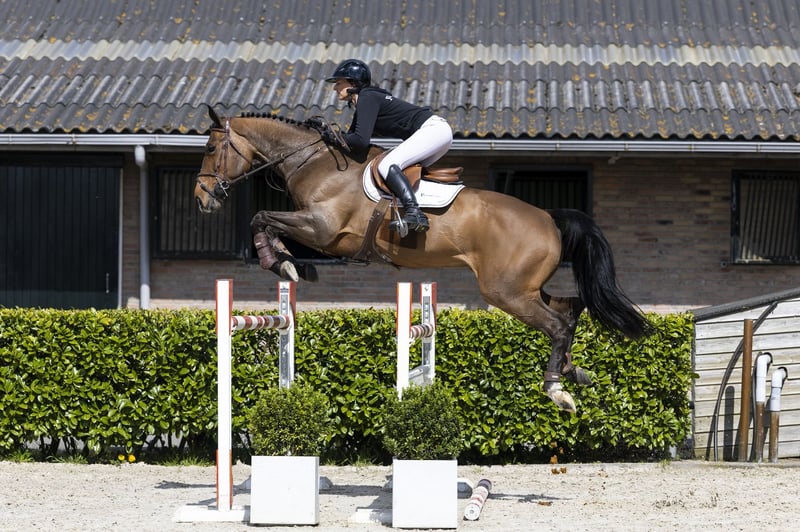 Horse with 1.40m experience. Friendly in handling and willing to work with an eager attitude. Has a lot of scope and blood and wants to go to the other side. Jumps carefully and shows quality. Has a curb. Sire Der Tänzer PKZ is a son of Davignon I (Grand Prix dressage) and combines rideability with attitude. His offspring are seen in the sport up to 1.45m level, including Ikada herself (1.40m). Dam The dam Impresa PKZ is a daughter of Clinton (1.60m), which contributes to scope and jumping quality. Damline The damline is strong and internationally proven. From the direct line comes Ispanets (1.40m). In the second line we see among others Luna PKZ (1.40m) and multiple horses at 1.30m–1.35m level. Further in the pedigree we find a lot of international sport, including Ballerine du Vilpion (1.60m–1.70m), Arpege de Carles (1.60m), Georgina de Carles (1.55m), Evolene de Carles (1.50m) and several horses at 1.40m–1.45m level. The line shows a consistent production of sport horses from 1.30m up to the highest level.
