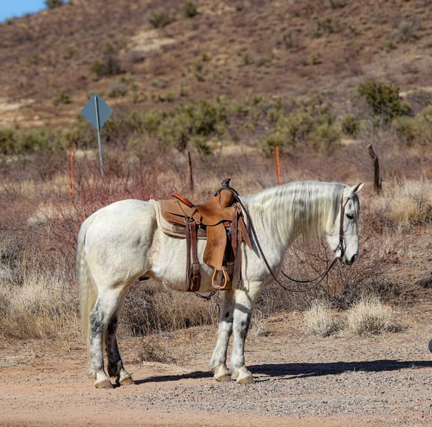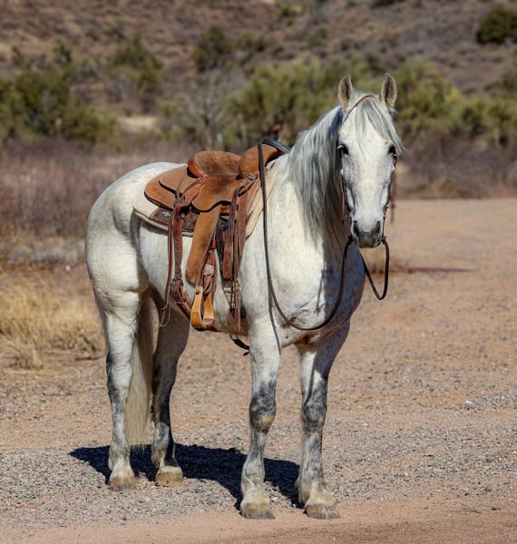 ONLINE AUCTION Place your bids at www.PlatinumEquineAuction.com Starting Bid $3500 Auction ends March 23rd, 2025 Need a new saddle? Check out White Rock Saddles on our website or Facebook! Gandalf is a 10 year old grade warlander gelding standing 15.1hh. This magnificent gelding is just as gentle as he is gorgeous!!! Embark on your next adventure down the trail or lope flawless circles in the arena, you name it and Gandalf will do it, taking great care of you along the way!! Cruise on down the busy streets of town, meander down the trail, weave through the brush, climb through the rocky rough country, cross flowing waters. Gandalf will go absolutely any direction you point him without batting an eye, surefooted as can be with absolutely zero spook!! This handsome gelding is not only an amazing trail partner, he’s just as fun in the arena!! Gandalf will walk, trot and lope both ways with ease, as well as neck rein, sidepass and has a great stop! Gandalf would truly excel in absolutely any direction you decide to take him! Gandalf is easy to catch and good to groom, saddle, bridle, bathe, shoe and load!! Will come with a clean coggins and health! Transport can easily be arranged anywhere in the US!! Located in Camp Verde, AZ. D/C Equine Services Dallas 804-822-2233 or Natasha 928-460-2625. ONLINE AUCTION Place your bids at www.PlatinumEquineAuction.com Starting Bid $3500 Auction ends March 23rd, 2025 Need a new saddle? Check out White Rock Saddles on our website or Facebook!