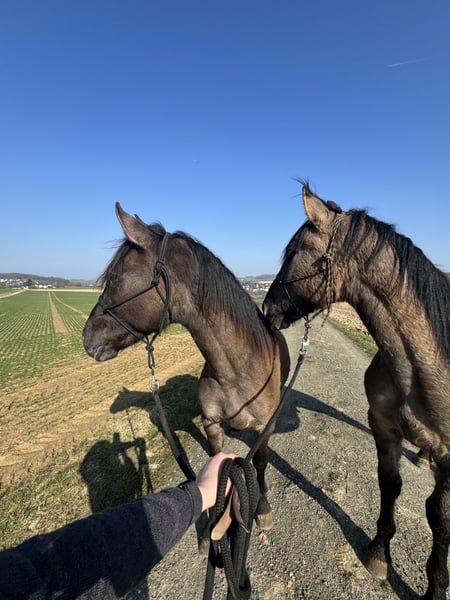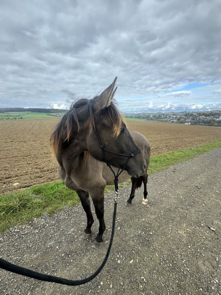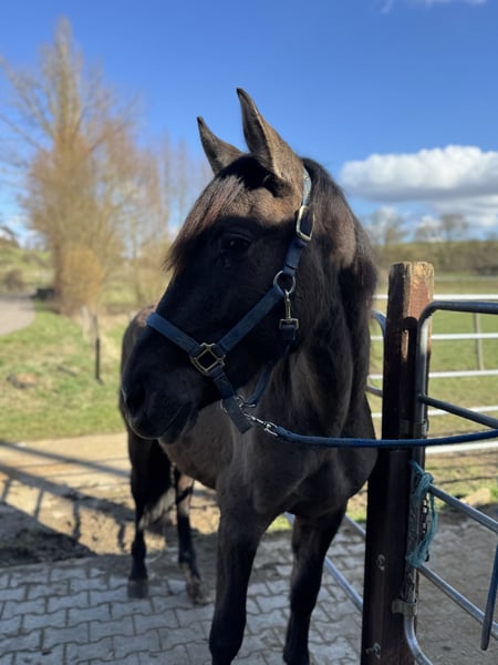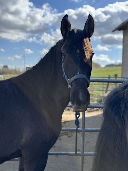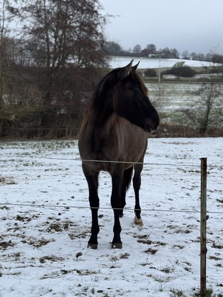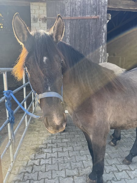 Ich verkaufe meinen 2 Jährigen Warlander Hengst schweren Herzens aufgrund von Auswanderung wo er leider nicht mit kann. Elrond ist ein toller junger Bub. Er ist sensibel und eher ein „ein-Mann-Pferd“. Er richtet sich sehr nach seiner Bezugsperson. Fremde Situationen sind zwar erstmal etwas gruselig, wenn man ihn aber heranführt ist die Sache dann in Ordnung und gar nicht mehr so gruselig wie vermutet. Er kennt den Schmied und den Tierarzt, fährt Hänger und auch sonst ist er an Alltägliches gewöhnt. Traktoren, Autos, Planen, andere Tiere wie Hunde, Katzen, Ziegen, Hühner, Schafe, Gänse,…. alles kein Problem. Ich hatte mit ihm noch nie die Situation, dass er nicht händelbar oder kopflos war. Er ist immer mit einem Ohr bei seiner Bezugsperson. Ich habe mit ihm viel geübt. Er lässt sich einwandfrei führen, er weicht und lässt sich rückwärts richten. Hufe geben und überall anfassen sind ebenso kein Problem. Er ist sehr verschmust und fordert das manchmal sogar ein. Er war noch nie krank und ist Ekzemfrei. Sein Thema sind allerdings Sprays. Wir üben seit einiger Zeit mit Mähnen- und Fliegenspray aber das findet er bisher super gruselig. Er ist bis er einjährig war mit seiner Mutter im Herdenverband aufgewachsen. Einjährig kam er zu mir und stand von da an auch immer in der Herde. Er ist sehr sozial und weiß sich auch unterzuordnen. Sein Endmaß wird um die 1,60 m sein. Elrond hat 75% Iberer Anteil. Sein Vater ist der tolle und erfolgreiche Lusitano Inefavel (I-Don Malagueno). Elrond wurde als Fohlen ebenfalls prämiert. Derzeit ist seine Farbe noch Smoky Grullo, tendiert allerdings dazu, Schimmel zu werden. Er hat außerdem wunderschöne Gänge und ist sehr wendig. Ich wünsche mir ein Zuhause, in dem er wie bei mir, altersgerecht gefördert wird im Herdenverband. Weitere Bilder und Videos sind auf Instagram unter warlander_elrond zu finden. Bei Fragen usw stehe ich natürlich zur Verfügung. Der Bub verdient den Bestplatz! Auf Wunsch kann er bei mir auch noch gelegt werden. Elrond ist kein Notverkauf!!!