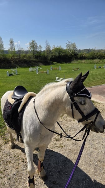 Prinz ist ein wunderschöner, 18-jähriger Schimmelwallach mit einem lieben und zuverlässigen Charakter. Früher lief er in einer Reitschule und wurde bei uns hauptsächlich im Gelände von meiner 6-jährigen Tochter geritten. Auch beim Muki-/Vaki-Reiten macht er brav mit und bringt Anfänger sicher von A nach B. Auf dem Reitplatz zeigt sich Prinz ebenfalls brav, benötigt dort jedoch eine konsequente und sichere Führung. Im Gelände ist er ein echter Verlasspartner und bereitet Gross und Klein viel Freude. Prinz ist sehr sozial und herdenverträglich. Aktuell lebt er mit unseren Shettys im Offenstall, was er sehr schätzt. Er ist lange Weidezeiten gewohnt, vorne beschlagen und hinten barhuf. Da meine Tochter sich nun vermehrt dem Springsport widmen möchte, haben wir uns schweren Herzens entschieden, für Prinz ein neues Zuhause zu suchen. Wir wünschen uns für ihn einen liebevollen Endplatz bei geduldigen Menschen oder einer netten Familie mit Kindern, die mit ihm noch viele schöne Ausritte geniessen möchten. Prinz ist nicht turniergeeignet, da ihn solche Situationen stressen. Daher suchen wir bewusst einen ruhigen und passenden Platz, an dem sein Wohl an erster Stelle steht. Platz vor Preis – kein Notverkauf.