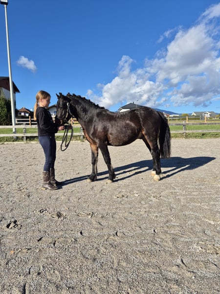 Taro ist ein 2 jähriger Welsh C Wallach mit einem erwarteten Endstockmaß von 125cm. Auf den letzten 2 Fotos sieht man seine Mutter, die auch bereits 3 jährig ein absolut kopfklares Kinderpony war. Ebenso wie sein Vater. Taro kann wie seine Eltern nächstes Jahr als Reitpony durchstarten. Taro ist bei uns am Hof geboren und kennt Kinder in allen Lebenslagen. Er hat keinerlei Unarten wie schnappen, knabbern, schlagen usw. Unser Kinder im Alter von 5-9 Jahren können ihn problemlos alleine handhaben, striegeln, usw. Taro kennt es darüber hinaus alleine vom Hof weg zu gehen, kennt Straßenverkehr uvm. Er ist brav beim Hufschmied und beim Impfen. Er ist gechipt, hat einen Equidenpass, ist geimpft, wurde regelmäßig entwurmt und alle 6 Wochen den Hufschmied vorgestellt. Neben seinem korrekten Exterieur, punktet er mit seinem Herz aus Gold. Er ist eine absolut coole Socke, der Kinderaugen zum Strahlen bringt. Wir können uns ihn auch gut als zukünftiges Therapiepony oder Reitpony für kleine Reitschulen vorstellen. Oder aber auch als Herzenspony für einen kleinen Reiter. Ebenso bringt er Qualität und Leistungsbereitschaft für den Fahrsport mit. Transport kann von uns aus gerne organisiert werden.