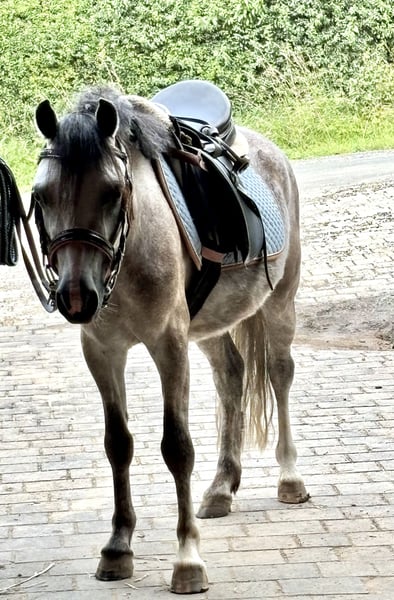 Preis steigt bei weiterer Ausbildung „Bob der Baumeister“, bei uns liebevoll Bobby genannt, wurde 2020 bei uns geboren und ist seitdem liebevoll aufgewachsen. Er wurde 4-jährig gelegt und anschließen schonend und mit vielen Pausen angeritten. Bobby lässt sich brav von Kindern an der Longe in allen drei Grundgangarten, geführt und frei im Schritt und Trab reiten. Der Galopp ist beim freien Reiten ausdrücklich noch nicht gefestigt. Bobby kommt jetzt wieder in Arbeit, um das zu festigen. Bobby kennt Spaziergänge und geführte Ausritte, Stangenarbeit an der Longe und unter dem Reiter. Im Umgang ist er in jeder Situation händelbar und überwiegend sehr brav. Bobby war beim anreiten ein absoluter Musterschüler und überzeugt auch jetzt durch seine gelassene Art. Neue Aufgaben meistert er stets mit Freude. Bobby kennt sowohl Box, als auch Offenstall. Er läuft bei uns Barhuf. Bobby ist ein absolutes Traumpony und wird nur abgegeben, weil wir leider nicht alle behalten können.