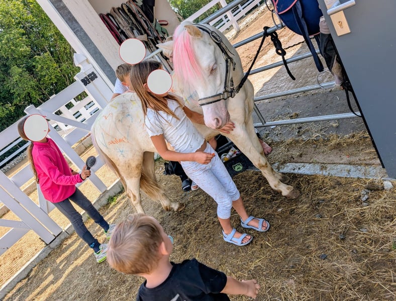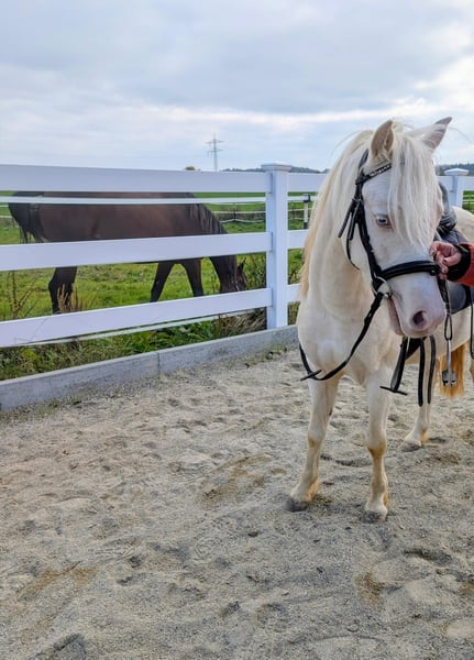 Unser kleiner Schatz Carlos sucht ein neues, liebevolles Zuhause. Er ist ein 5-jähriger Wallach mit einem Stockmaß von ca. 1,20 m und seiner traumhaften Cremello-Farbe ein echter Hingucker! Carlos ist lieb im Umgang, lässt sich auch von Kindern problemlos putzen und führen. Er kennt Platz, Gelände und Longenarbeit und macht alles brav mit. Auch Bodenarbeit gehört zu seinem Alltag, die er aufmerksam und motiviert meistert. Sowohl beim geführten als auch beim freien Reiten zeigt er sich stets kooperativ und aufmerksam. Carlos ist ranghoch, dabei aber fair und souverän im Sozialverhalten – er braucht also Menschen, die ihm mit Ruhe und Klarheit begegnen. Er ist gesund, regelmäßig entwurmt und geimpft. Ein ideales Familienpony, Freizeitpartner oder Begleiter für Kinder mit Erfahrung und Herz. ❤️ Lieferung gegen Kostenübernahme möglich Standort: 78333 Stockach Bei Interesse gerne melden – wir freuen uns über ernstgemeinte Anfragen Kontakt: 0041764607471 Privatverkauf: Dies sind keine zugesicherten Eigenschaften, sondern lediglich subjektive Eindrücke des Verkäufers.