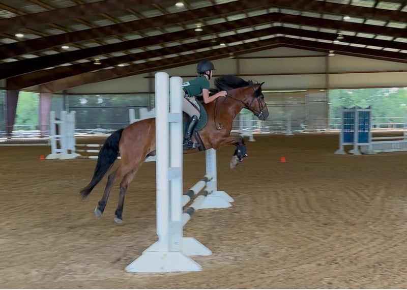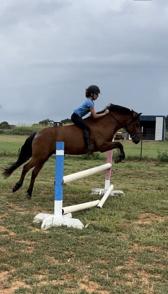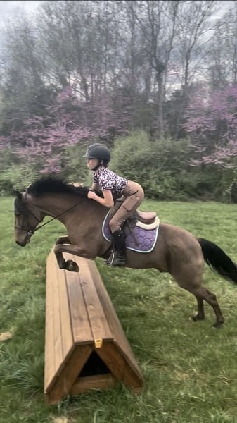 ♦️ 𝐭𝐡𝐞 𝐀𝐌𝐄𝐑𝐈𝐂𝐀𝐍 𝓕𝓪𝓵𝓵 𝓒𝓵𝓪𝓼𝓼𝓲𝓬 ♦️ Happening now thru MONDAY | OCTOBER 20th - Available EXCLUSIVELY on HorseBid's website! For more details and to register visit: www.Horsebid.com CONSIGNOR CONTACT: Ponies & Ponytails 727-741-0559 LOCATION: Cleburne, TX BREED: Welsh x Warmblood REGISTERED: No COLOR: Bay HEIGHT: 13.2 AGE: 8 GENDER: Gelding If you want the fanciest true all around pony.. this is your guy!! Teddy is a 8yr old 13.2h bay welsh x warmblood cross gelding. ENGLISH EXPERIENCE: This guy is a tried and true all arounder!! He’s been successfully shown in the hunters, jumpers, equitation and cross country!! You point and he tucks those little legs as cute as can be and gives you the best little jump he’s got every time!! No silliness!! No prep required!! This pony loves his job!! Teddy is also very competitive on the flat!! He’s got phenomenal movement!! Just watch his videos!! The flattest little trot and that canter is amazing!! So incredibly smooth he makes the equitation classes a walk in the park!! He catches his leads every time and he’s close to being finished on his lead changes!! He’s got very easy transitions up and down. Listens well to voice and responds well to your seat and leg. This is the pony that will take the kiddos to the next level. He’s quiet and easy enough to show in the cross rails yet talented enough to be competitive in the 2’3-2’6”. He’s been successfully shown already in the 2’3” and schooled courses at home up to 2’9” with more room to move up! WESTERN EXPERIENCE: If English isn’t your thing.. Teddy is happy to do the western events! He will gladly go to the playdays and do the barrels and poles. He’s very easy to maneuver and very respectful of his riders cues. You can ask him for all the speed then turn him right off and he will drop his head and walk quietly. He will go trail riding all day long and go anywhere you point him! Teddy will ride in the front, back or middle. Doesn’t mind wildlife, traffic, dogs or goats. He will go up steep hills like a mountain goat and he lovesss to play in the water!! He’s got a nice easy walk, jog, lope and a nice easy little neck rein! DISPOSITION: Teddy should suit just about any program! From the lesson barns to the show barns. He’s got a wonderful disposition and the coolest in your pocket personality!! Teddy is the kind of pony you don’t find everyday. From his training and experience to his bubbly barn favorite personality. He meets you at the gate every time and smiles for cookies! UPKEEP: Teddy is a very easy keeper. He eats alfalfa hay and a 1/2 scoop of a basic pelleted grain twice a day. UTD on all. Currently in a basic front shoe for jumping support. He has been and can easily go barefoot. LOADING: Teddy loads and unloads very easily. He hauls great and stands quietly tied to the trailer. TURNOUT: Teddy can go out alone or in a group setting. He’s been out with mares and geldings without drama. GROUND MANNERS: Teddy is very quiet on the ground. He stands well for washing, grooming, farrier, saddling and he’s easy to bridle. You can single tie or cross tie Teddy. He’s quiet with dogs and goats running around him as well. BAD HABITS/VICES: Teddy has NO bad habits or vices. No buck, rear, bolt, bite or kick. TACK: Teddy rides in anything from a halter and lead rope to a smooth snaffle to a slow twist snaffle. Super easy. Not fussy.