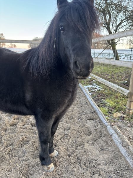 A charming, curious pony. It lives outdoors year-round in a paddock with turnout. No history of colic and has always been healthy. Slightly plump, but very agile and eager to move. Friendly to children, but also quite stubborn, as is typical for a pony. It enjoys being busy and cuddled. No dealers! We are only looking for a loving owner who will give it more attention. It also enjoys lunging and going for walks... loves grooming and being stroked. Regularly dewormed, vaccinated, with hooves and teeth maintained. The pony has a green passport. It is familiar with mixed herds and is lower in the pecking order.