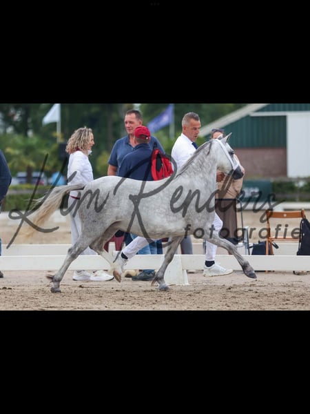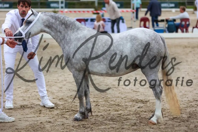 Challenge Glamour Felou ist eine derzeit noch 3-jährige Welsh A Stute mit einem Stockmaß von ca. 1,22m und sehr guter Qualität und Abstammung. In 2024 wurde sie auf der regionalen Keuring in Heteren mit einer 1. Prämie, dem 1. Platz sowie dem Titel Jugendchampion ausgezeichnet. Auf der Central Keuring Houten 2024 erreichte sie einen sehr guten 2. Platz. Auch 2025 bestätigte sie ihre Qualität erneut mit einer 1. Prämie und einem 3. Platz auf der regionalen Keuring Heeswijk Dinther sowie der Zulassung zur Central Keuring Houten. Sie hat zudem das Zuchtprädikat STER. Im Umgang ist sie brav und unkompliziert, lässt sich problemlos verladen und ist artig beim Schmied. Sie ist vollständig geimpft und regelmäßig beim Schmied gewesen. Das longieren hat sie bereits kennengelernt und wird nun dem Alter entsprechend, Schritt für Schritt ausgebildet (Reiterlich als auch im Fahren). Der Preis steigt daher bei weiterer Ausbildung. Weitere Fotos und Videos können gerne verschickt werden.