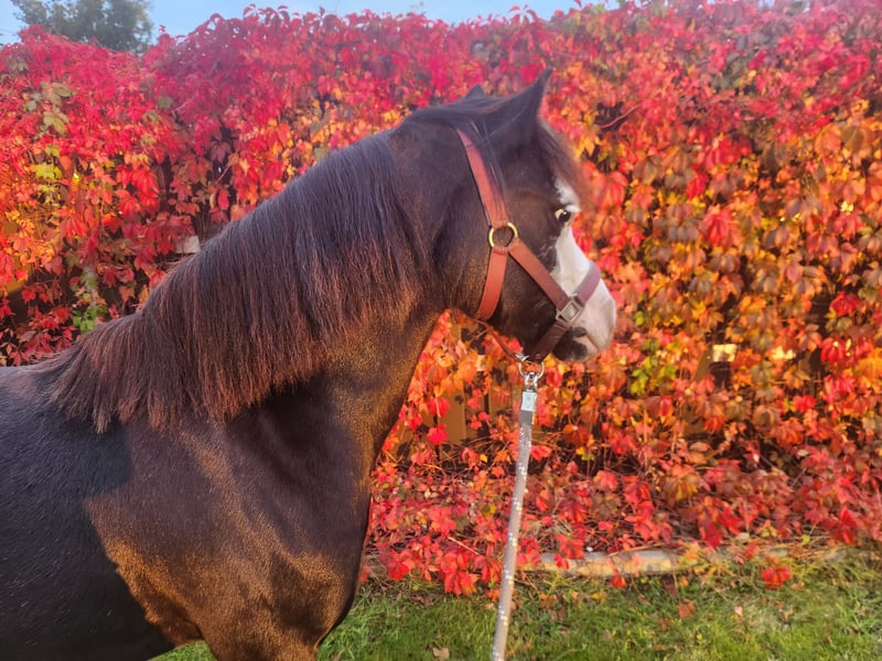 Verkaufe im Auftrag diese Traumhafte Welsh A Ponystute. Auki ist eine 5 Jährige und 1,22m große Stute, die von den Bekannten Ponyhengst "Vier Jahreszeiten High Guy" abstammt. Daher auch für die Zucht interessant! (letzes Bild vom Diesjährigen Fohlen) Mit 4 Jahre wurde sie schonend angeritten und hatte dann eine Fohlenpause gehabt. In der Zeit wurde sie ab und zu von Kindern bespaßt. Seit gut einanderhalb Monaten wird sie wieder angeschoben und zeigt sich dabei sehr Motiviert. Sie läuft auf dem Platz und im Gelände problemlos in alle 3 Gangarten, macht kleine Sprünge, geht alleine vom Hof und lässt sich problemlos verladen. Der Hufschmied kommt bei uns Regelmäßig, die Herbstwurmkur bekommt sie auch und die Zähne wurden im Sommer 2024 erst gemacht. Es sind keine Krankheiten bekannt! Auf wünsche des Käufers kann eine AKU selbstverständlich gemacht werden. Der Preis steigt bei weitere Ausbildung. Bei weiteren Fragen gerne Schreiben oder Telefonisch anrufen unter 01607174990