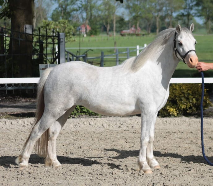 Vendo qui una cavalla Welsh-A di sette anni, alta 1,17 m, discendente da Shorebrooks Cooper x Moorcock Vesper. Si distingue per il suo aspetto elegante, il carattere tipico da pony e un temperamento amichevole e molto socievole. La cavalla ha già dato alla luce tre puledri sani, con conformazione corretta. La sua prole si presenta espressiva, vivace nei movimenti e di alta qualità – ogni puledro si è distinto positivamente nella propria coorte. La cavalla è stata messa in longe, ma non è stata montata. È incinta di Leybuchts Cadillac, parto previsto per il 2027. La cavalla è in buona salute, tranquilla in stalla, al carico e al ferratura, e viene affidata esclusivamente a mani responsabili e amorevoli. Per interesse o ulteriori informazioni, sono lieto di ricevere un messaggio. È possibile visitarla in qualsiasi momento previa appuntamento.