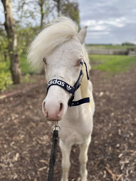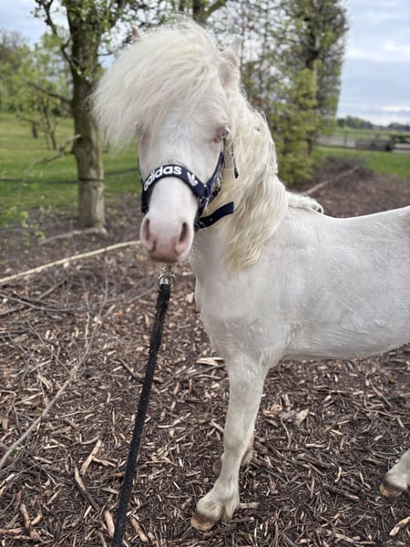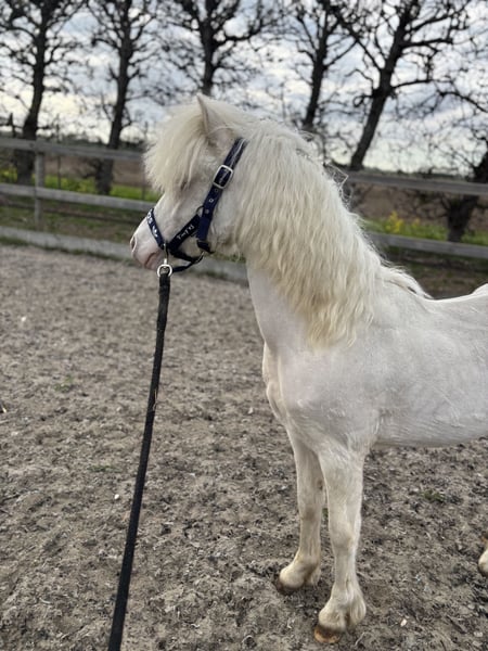 Prachtig Welsh A hengstje v.Cosfords Tic Toc Mvg Paaskamps Princenhage 1-4-2025 Cremello met nu al een enorme bos manen en mooi front.