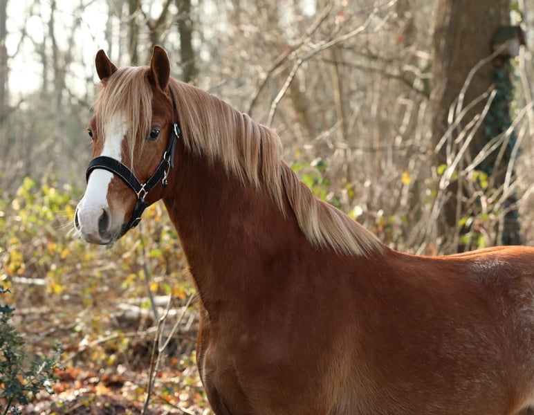 Zum Verkauf angeboten Wunderschöner, äußerst gut bewegender dreijähriger Welsh B Hengst namens Liberty. Er misst 133 cm. Sein Vater ist Moonlight H, seine Mutter die keur- und bevorzugte Stute Warmtebron’s Loddy-Lo. Sein Halbbruder (gleiche Mutter) wurde als Hunter nach Amerika verkauft. Liberty verfügt über drei zusätzliche Gangarten, ein Pony, das wirklich auffällt. Ein sehr schöner Typ mit einem eleganten Kopf. Zudem besitzt er ein äußerst liebes und menschenbezogenes Wesen. Liberty ist gesund und frei von (Haltungs-)Mängeln. Videos sind vorhanden.