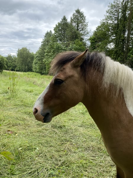 7-year-old Pony stallion with a special coat color seeking a new 5-star home Born May 2018 Mother: Shetland Pony, Father: Welsh Pony Social, playful, and well-behaved in handling. Familiar with road traffic, farrier, and older children. Prefers to go out on rides, both as a lead pony and under saddle. Enjoys groundwork and would likely make a good driving pony. Free of reindeer and eczema, barefoot and moving perfectly. Important for the new home: - Pony companionship - Open stable or daily turnout in a herd - An adult caregiver - Regular activity and training Not just a children's pony! This is a young stallion that still requires further training, so only suitable for experienced handlers. More details gladly provided upon request.