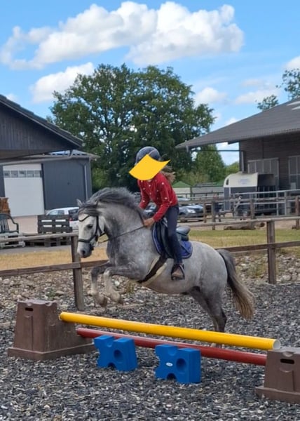 We are selling our beautiful, child-friendly 10-year-old Welsh gelding Johnny, who stands at a wonderful height of 132 cm. Johnny has won numerous show jumping and dressage WBO competitions or has been successfully placed. Due to his dual talent, he excels in both dressage and jumping with his incredible performances. Thanks to his absolute rideability and his patient, loving nature, even the smallest beginner riders can ride and jump him alone in the arena or on the trails. The children can also have fun riding tricks on him. This is possible on the lunge line or even while riding freely. When riding with a pad and neck ring, Johnny remains calm and responds to the slightest aids and the children's voice. Johnny is always reliable and calm. Bucking, rearing, and rushing are completely foreign to him. When riding, he is not easily distracted by the environment, making it easy to ride him in unfamiliar places. He is just as reliable in the field, galloping over stubble fields and going into the water. With his jumping talent, he can easily clear an 80 cm course. He does this with courage and awareness. He does not know how to stop or run past jumps, making it possible for even smaller children to jump him. Always friendly in demeanor, Johnny is very attentive to the children. They can bring him in from the pasture alone, groom him, wash him off, braid his mane, etc., and prepare him for riding. Johnny is absolutely herd-compatible; he stands together with both mares and geldings in our open stable. Any child can load him into the trailer alone, making it fun to go to competitions or take trips with the trailer. We hope he finds a wonderful new home where he will be loved just as much and can teach another little rider how to ride. A valid vet check without findings has already been done for the sale. A treasure that is so rarely found. We would be happy to send videos of him via WhatsApp at 015236768283. Best regards.