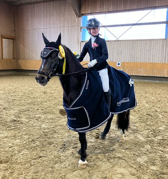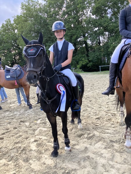 We are selling our wonderful 11-year-old Welsh B pony gelding "Balou rocks", a true talent in jumping and on the dressage arena. Details: Name: Balou rocks Breed: Welsh B Age: 11 years Height: approx. 1.30-1.35m Color: Dark brown Complete papers & competition pony registration Current vet check available Usage & Achievements: Placed in A* and A** jumping (style & time) Won E-dressage Won lead rein class Trail safe, loads well – goes easily through water ditches and jumps logs Character & Suitability: Balou is a beautiful pony with a solid, athletic foundation. He consistently shows a lot of potential in both jumping and dressage. For the right rider, he is a real dream! He is not a beginner pony but is perfectly suited for children or smaller teenagers with ambitions in jumping and dressage. Further Information: Regular hoof care, vaccinated and dewormed. Only to be sold to the very best hands, as a transition to a larger horse is taking place. Trial Ride: We charge €20 for the trial ride, which will be deducted from the purchase price later. If you are interested or have further questions, please feel free to contact us!
