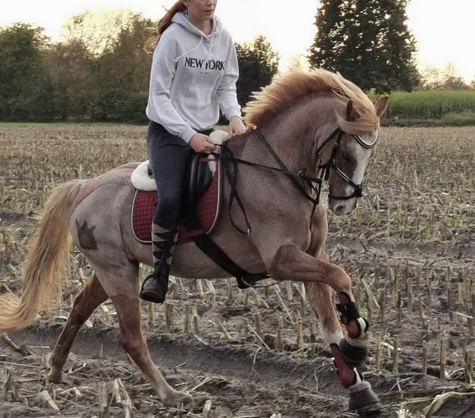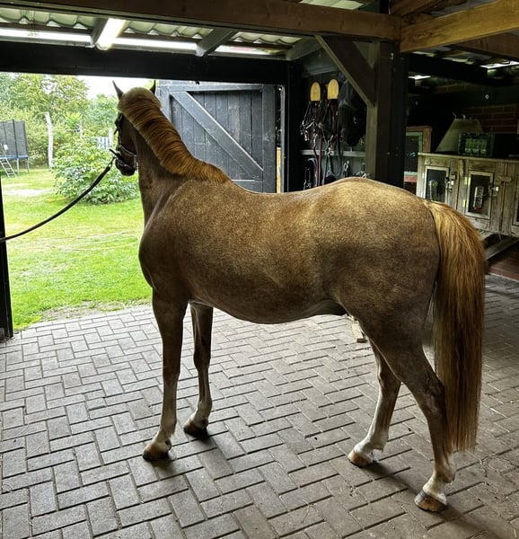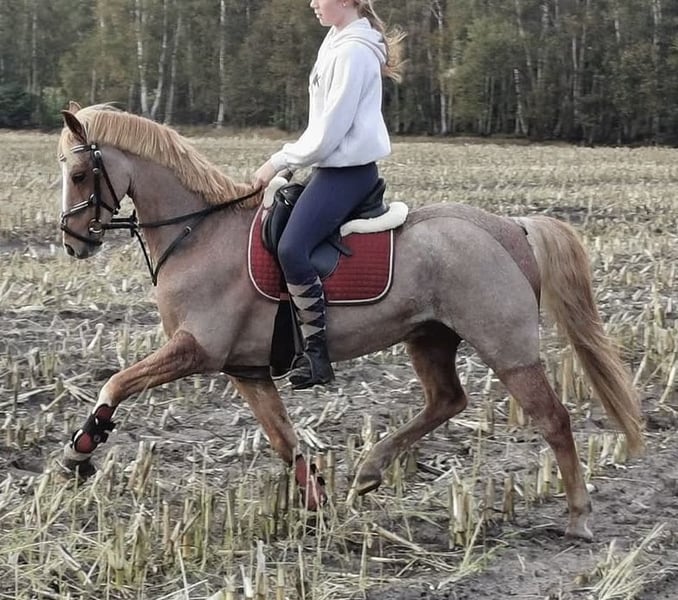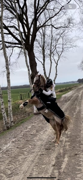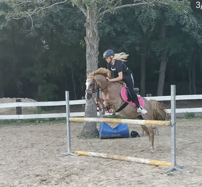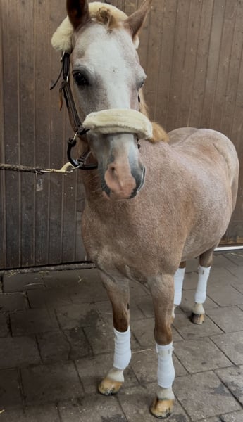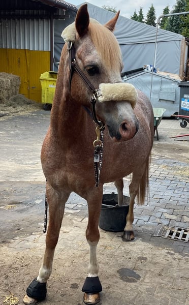 With a heavy heart, I have to sell my Welsh B gelding. He is 14.1 hands tall and 19 years old. As he is my heart pony, I am only offering him to the very best hands and with a secure placement guarantee! He is an all-rounder, very well-behaved in handling, excels in dressage, and also jumps. In the field, he is fearless. However, he should only be galloped there by experienced riders, as he tends to get quick. He can perform a flying lead change on command, along with many other tricks. He is compatible with all horses, regularly seen by the farrier and the veterinarian. He wears front shoes due to a crack in his pedal bone two years ago; he generally feels stiff on hard ground without shoes. Due to a lack of back muscle tone, he can no longer carry much weight. Current bloodwork is excellent, and he is otherwise healthy: no asthma, no laminitis, etc. No riding schools, only private individuals. Feel free to contact me with any questions.