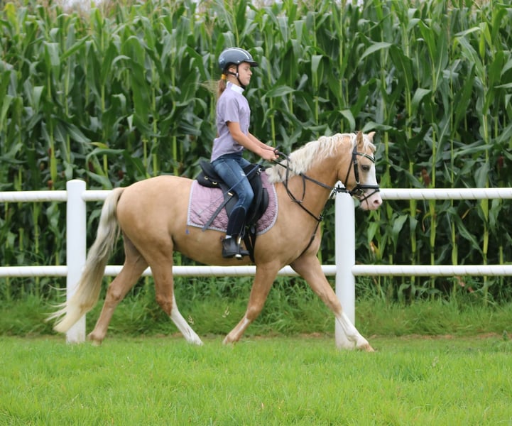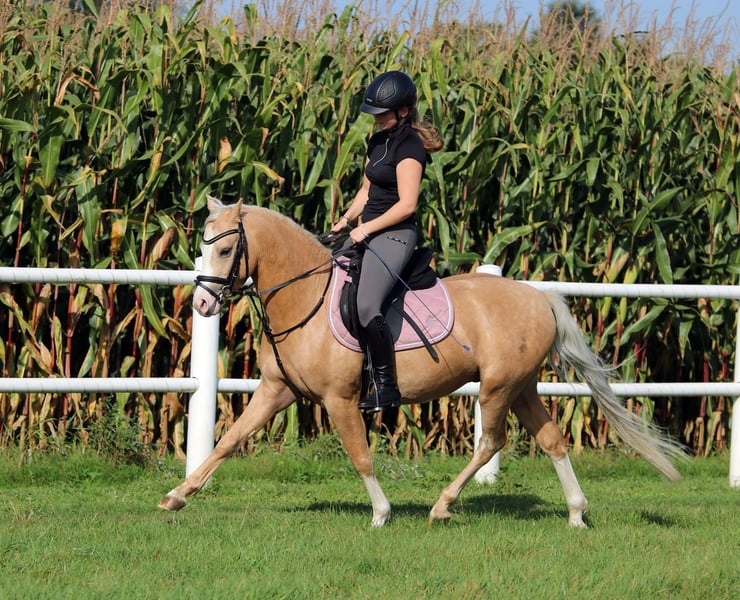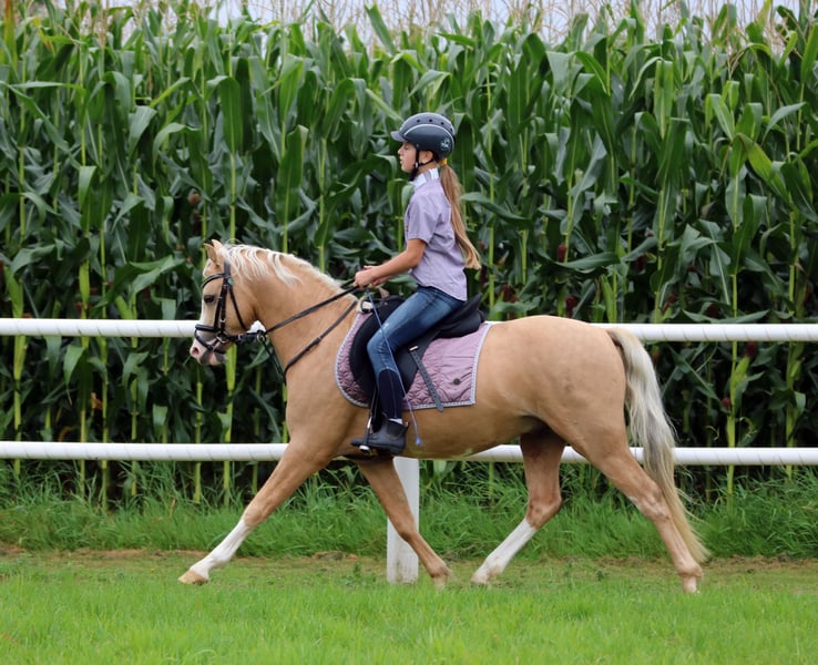 Zum Verkauf steht ein wunderschöner Palomino-Wallach aus dem Jahr 2022 mit besonderer Ausstrahlung. Das sympathische Pony überzeugt durch sein freundliches Wesen und seine elegante Erscheinung. Mit einem Stockmaß von 134 cm ist er talentiert und zeigt Lernbereitschaft - ausreichend für alle Reitsportarten. Beide Eltern sind erfolgreich im Sport. Dieses Pony ist ehrlich und unkompliziert. Kinder ab 5 Jahre können ihn putzen und Hufe auskratzen, er bleibt ruhig und gelassen und versteht sich mit den anderen Stallkameraden blendend. Prince ist gut und vielseitig ausgebildet und motiviert und eignet sich sowohl für ambitionierte Freizeitreiter als auch für den Turniersport. Seine angenehme Art macht ihn zu einem tollen Partner für Reiter aller Erfahrungsstufen. Prince kennt Kinder ab 6j bis 16j und macht auch Longestunden mit Kindern ab 6j bis 12j ist geduldig dabei und verleiht jedem ein sicheres Gefühl. Prince ist geimpft, entwurmt, läuft ohne Hufeisen und ist gesund, die Zähne auch geraspelt. Eine klinische Ankaufsuntersuchung wird zeitnah zur Übergabe vom Tierarzt durchgeführt. Bitte Verständnis haben, das Videos erst nach telefonischer Kontaktaufnahme verschickt werden. Besichtigungen werden telefonisch vereinbart und sind auf einem Samstag Vormittag möglich. Wir freuen uns auf Ihren Anruf und auf Ihren Besuch!