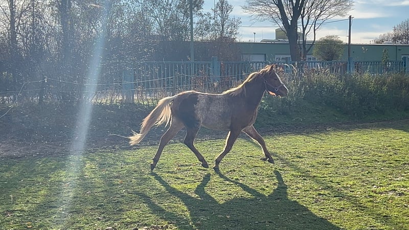 Finn, with his unique coloring and harmonious conformation, is truly a head-turner. His lovely face, complemented by his beautiful, expressive eyes, adds to his charm. Finn approaches people very confidently but always maintains a polite distance; he would never nudge or demand attention. He has been lunged and is familiar with rider weight in walk and trot. In April, he will turn five years old and is ready for further training. Loud, boisterous children are not quite his thing yet. However, with more handling experience, he will also be comfortable around them. Finn is gentle in leaving the herd and is accustomed to single walks with a handler across roads, fields, and through forests. If you would like to get to know him, please feel free to contact me by phone. When clicking the automatic reply, please provide a phone number, as I cannot send further information otherwise.