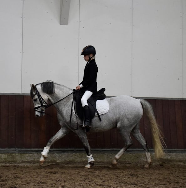 Spring Dreams Gucci 5y/o 1,36m Welsh pony ruin (C pony) M oefeningen dressuur Maakt een klein sprongetje Once in a life time pony. Mijn aller knapste Gucci is opzoek naar een nieuw ruitertje. Deze pony blijft mij verbazen en ik weet zeker dat hij het hoog gaat schoppen op wedstrijd. Helaas door mijn leeftijd en lengte niet realistisch dat ik hem mee neem op wedstrijd. Zijn oefeningen tot het M zitten er op en daarom kan je er zo mee starten. Gucci heeft pit en vindt het het leukst als hij echt aan het werk wordt gezet door een fanatieke ruiter. In sommige situaties kan hij wat onzeker zijn, maar als je een team met hem bent merk je hier helemaal niks meer van. Hij springt makkelijk en sprongetje en gaat mee het bos in. Gucci is helemaal gezond, heeft geen pony streken en is makkelijk met andere paarden. Voor meer informatie graag een berichtje! 06 83064251