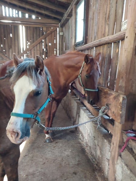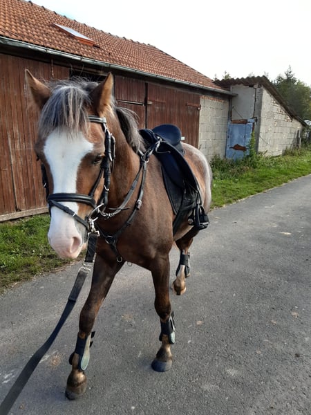 Twilight is a real eye-catcher with his striking coloring and harmonious conformation. He exhibits excellent gaits, including a spacious walk. The little guy is very trusting and approaches people willingly. Since the start of his training, he has shown a strong willingness to learn. He has been lunged, is familiar with blankets and leg wraps, and has been carrying a saddle with a tail strap and weights in all gaits for some time. Due to the lack of a rider (our daughter has outgrown him over the past four years), he has not been ridden recently. He is ready for further training. A career as a driving pony is also possible. Naturally, he is farrier-friendly, vaccinated, and dewormed. Twilight is happy to go on solo walks but also easily joins groups, crossing roads, fields, and forests with humans. He is familiar with dogs, cats, tractors, and quads. He is a dream pony for hobby riding or sport. An unshakable, cheerful, and energetic type. Not a desperate sale. Interested in getting to know him? Feel free to contact us. Video material is available upon request. If desired, the equipment can be included for an additional charge.