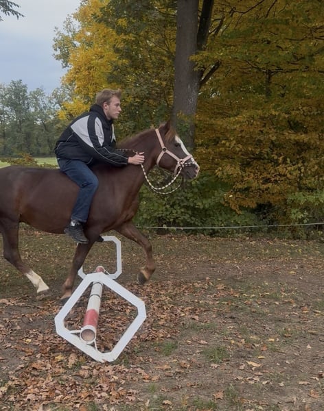 Wallach | 6 Jahre | ca. 140 cm | 2019 geboren Touch Down ist ein beeindruckender Ponywallach, der sowohl im Freizeit- als auch im Sportbereich begeistert. Mit seiner charmanten Art, seinem starken Charakter und seiner eleganten Erscheinung zieht er alle Blicke auf sich. Er ist lieb und brav im Umgang, zeigt sich stets unerschrocken und bleibt auch in neuen Situationen ruhig und gelassen – egal ob im Gelände, auf der Straße oder beim Verladen in den Anhänger. Am Boden wie unter dem Sattel arbeitet er motiviert mit und zeigt dabei viel Freude und Talent – besonders beim Springen. Da er gelegentlich etwas dominant auftritt, ist Touch Down kein reines Kinderpony, eignet sich aber hervorragend für ambitionierte Jugendliche oder erfahrene Reiter, wie zb Mutter/ Kind Pony die Spaß an einem lernwilligen und ehrlichen Partner haben. ✅ Gesund und gepflegt ✅ Geländesicher & verladefromm ✅ Motiviert, brav & leistungsbereit ✅ Ideal für Freizeit, Training oder Turnier Ein rundum toller Wallach, der mit dem richtigen Reiter sein volles Potenzial entfalten kann. Probereiten möglich gg Gebühr von 45€