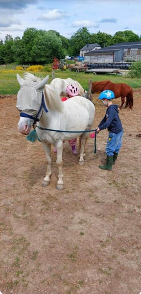 À vendre, pour le compte du propriétaire, le poney Welsh de mâle Éclair, né en 2019, avec une taille d’environ 1,28 m. Ce joli étalon gris clair est issu de JACK DE SILLY et séduit non seulement par son apparence attrayante, mais aussi par sa formation polyvalente et son caractère amical. Éclair est un véritable poney tout-terrain, utilisé avec succès en dressage, saut d’obstacles, cross et Mounted Games. Ses performances internationales en Mounted Games méritent une mention particulière, où il fait preuve d’un enthousiasme et d’une motivation constantes. Au quotidien, il se montre très facile à vivre, est ferré et chargé sans souci, actuellement pied nu. Il est hébergé en box paddock avec sortie quotidienne, qu’il connaît bien et accepte sans problème. Il peut être monté aussi bien avec selle qu’à cru. Éclair est parfaitement manipulable par des enfants, aussi bien au sol qu’en selle, ce qui en fait un poney idéal pour des enfants ou une famille. Il connaît également le travail avec des bandes d’attache et se montre sage et fiable dans ces situations. Grâce à sa bonne capacité de charge, il convient aussi bien à des enfants qu’à des adolescents ou de plus petits adultes, ce qui en fait également un poney parfait pour mère et fille ou pour toute la famille. Un poney sportif, polyvalent, doté d’un caractère exceptionnel, qui apportera beaucoup de plaisir à son nouveau cavalier.